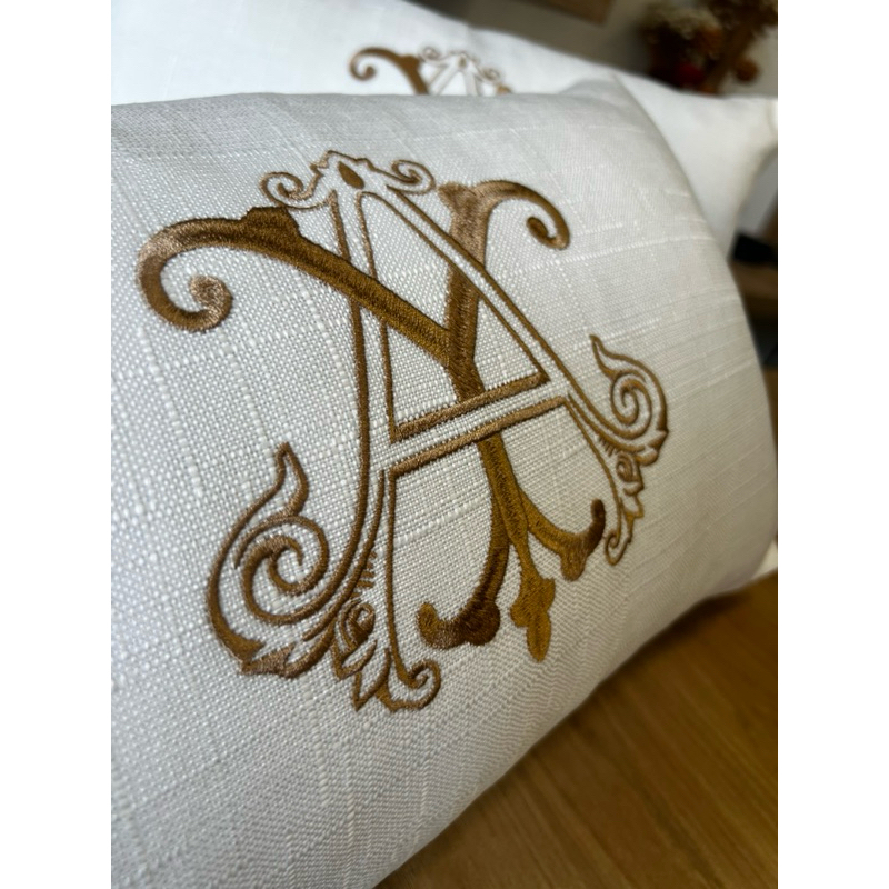 Almofada Baguete 50x30 Personalizada Bordada Monograma Logo Com Enchimento Linho Veludo Escritório