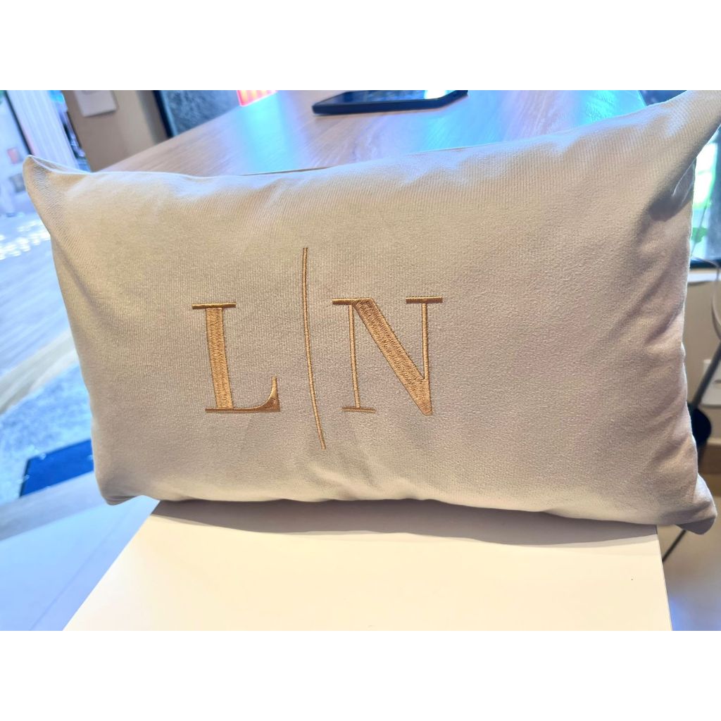 Almofada com enchimento decorativa personalizada com as iniciais casal
