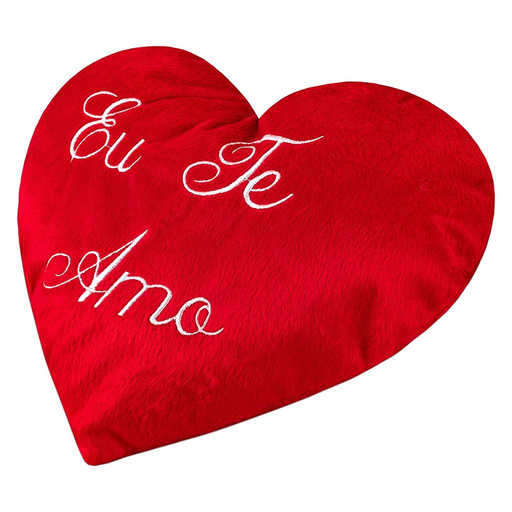 Almofada Coração de Pelúcia Bordado Eu te Amo 35x25cm Dia dos Namorados Decoração