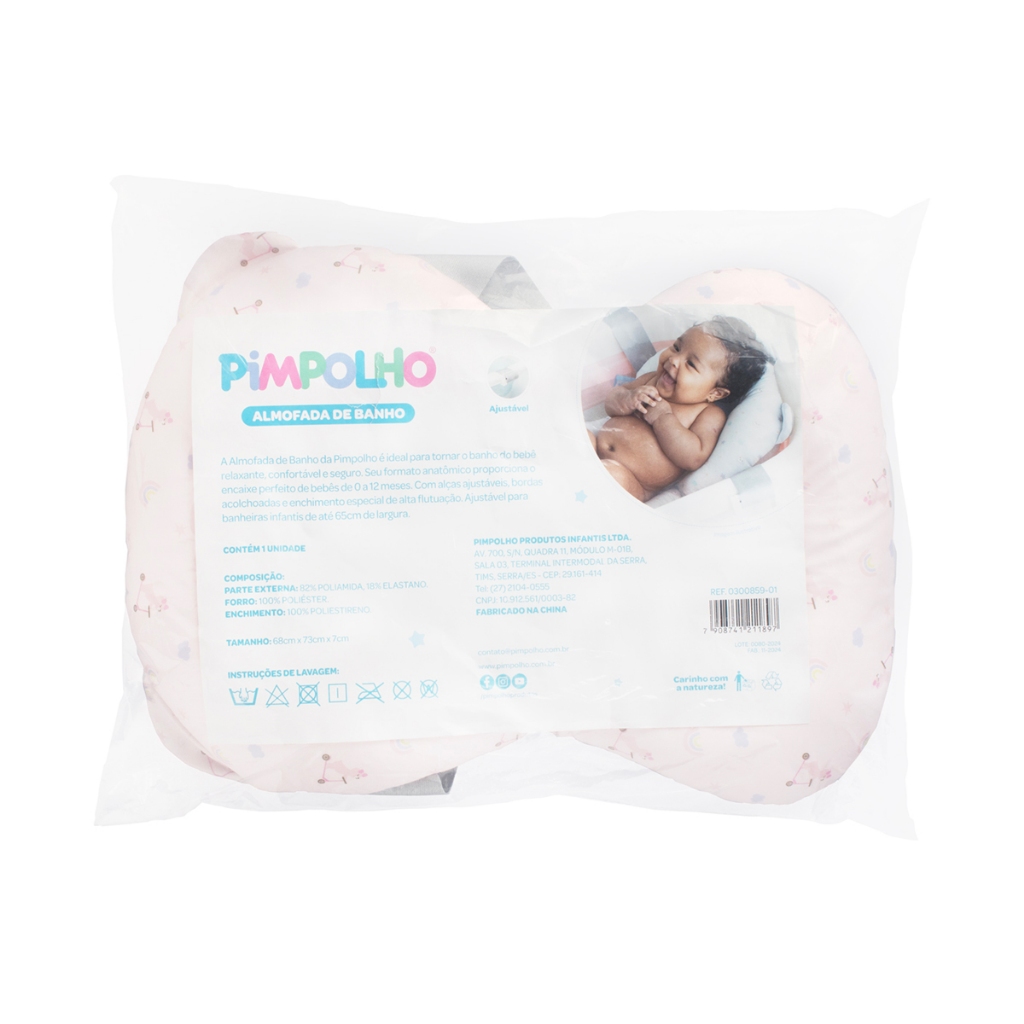 A almofada de Banho Pimpolho é um acolhimento suave para o seu bebê durante o banho. Com formato anatômico, alças ajustáveis e enchimento que flutua na água, ela abraça o pequeno com segurança e aconchego, da cabeça aos pezinhos. Ideal para transformar a hora do banho em um momento de calma, conexão e muito amor. Observação: apropriada para banheiras com até 65cm de largura Cor disponível: • Cinza – Ursinhos • Rosa – Ursinhas • Azul – Dinossauros. Faixa Etária: De 00 a 12 Meses Modo de Uso: Abra a almofada em formato de ''T'', encaixe os conectores nas laterais da banheira, enrole os conectores para ajustar a altura de forma que a almofada fique confortável para receber o bebê. Conservação: • Lavagem a mão • Temperatura máxima de 40 graus celsius • Não alvejar • Não secar em tambor • Secagem em varal • Não passar • Não limpar a seco • Não limpar a úmido. Advertências: • Lavar somente à mão • Guarde em local seco, longe do alcance do sol. • Este produto não é um brinquedo, utilizar sempre sob supervisão de um adulto.