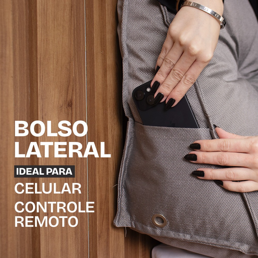 Conforto, ergonomia e versatilidade. A almofada de cabeceira da BF Colchões proporciona apoio ergonômico para a lombar. Feita com flocos de espuma, ela não afunda e ajuda a manter a postura correta enquanto você descansa. É perfeita para quem busca mais apoio e praticidade no dia a dia, ideal para ler, assistir TV, trabalhar no notebook ou simplesmente relaxar. Além da funcionalidade, tem alta durabilidade e traz um toque de charme e elegância para a sua cama, transformando o ambiente em um espaço mais aconchegante e sofisticado. Por que escolher a almofada de cabeceira BF Colchões? Conforto e qualidade: feita com flocos de espuma, que garantem estabilidade e suporte. Ideal para apoiar as costas e relaxar com bem-estar. Tecido de alta durabilidade: fabricado com tecido Jacquard, que oferece um toque macio e resistência. Bolsos laterais funcionais: espaço para guardar celular ou controle remoto, com saída para carregador que facilita seu uso no dia a dia. Design com capitonê: acabamento com botão revestido, que deixa a peça ainda mais elegante. Versatilidade: pode ser usada na cama, sofá ou poltrona, como encosto de leitura ou apoio para a lombar. Chega na sua casa enrolado, facilitando na entrega e transporte. Especificações do produto Tamanho: 90x50x20 Tecido: Jacquard Enchimento: Flocos de espuma Marca: BF Colchões Observações: Pode ocorrer pequena variação de tonalidade na cor do produto devido às diferenças de iluminação e ambiente.