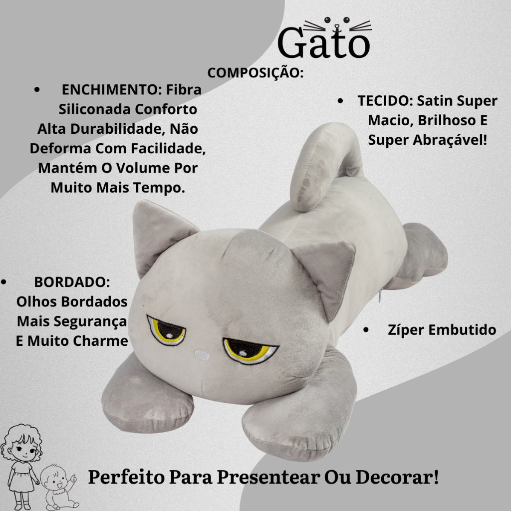 Almofada Gatinho Pelúcia Aconchegante Gigante Decorativo