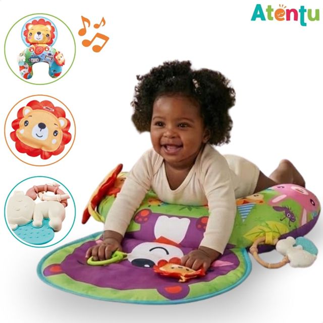 TRAVESSEIRO ALMOFADADO INFANTIL ESTAMPADO – ATENTU O Travesseiro Almofadado Infantil Estampado da Atentu foi criado para garantir conforto e estímulo nos primeiros meses do bebê. Ideal para descanso e brincadeiras leves, possui formato macio que oferece apoio e incentiva o bebê a levantar sozinho. Feito com materiais resistentes e agradáveis ao toque, conta com estampa de animais como urso e leão, tornando o uso mais divertido. Uma opção sensorial que acompanha o desenvolvimento inicial com aconchego e interação. ESPECIFICAÇÕES: - Travesseiro almofadado infantil; - Emite som divertido; - Brinquedo sensorial estimulante; - Estampa colorida de animais; - Acompanha chocalho removível; - Indicado para bebês de 0 a 5 meses. CONTEÚDO DA EMBALAGEM: - 1 Travesseiro Almofadado Infantil; - 1 Chocalho removível. - 1 Acessório Sonoro Macio. MEDIDAS DO PRODUTO: - 43 x 43 x 10 cm (A x C x L); IMPORTANTE: Garantia: 3 meses a partir da data de recebimento – para defeitos de fabricação (não cobrimos mau uso) Todos os direitos reservados Em caso de cópia desta descrição e imagens, os responsáveis serão cobrados de acordo com a Lei (9.610/98) de Direitos Autorais