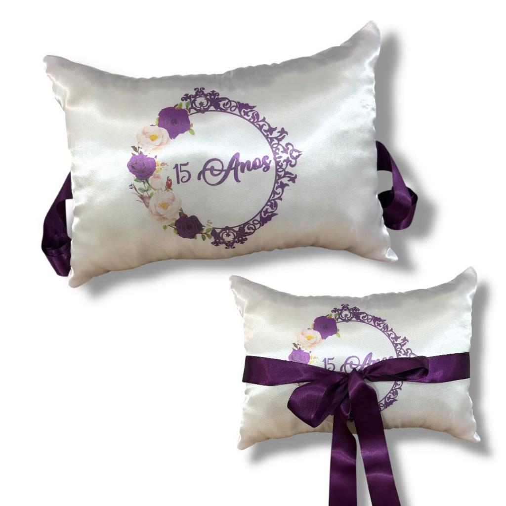 *Tamanho 30 x 38 ( medidas aproximadas ) - NÃO COLOCAMOS NOMES ** * Feitas em tecido de CETIM * Acabamento em ziper * * Escolha a cor das fitas no campo no anuncio. *ALMOFADA SOMENTE NA COR BRANCA** 01 UNIDADE DE ALMOFADA PARA LEVAR SAPATO DE DEBUTANTE