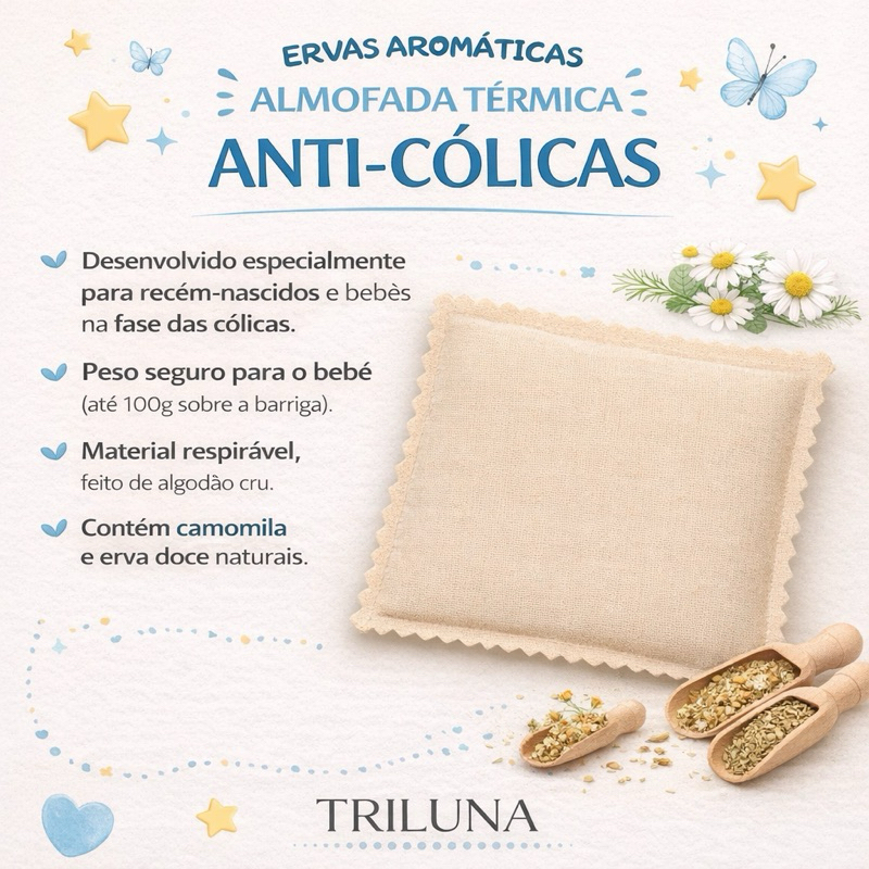 Almofada Térmica Anti Cólicas para Bebê | Ervas Naturais | Algodão Cru