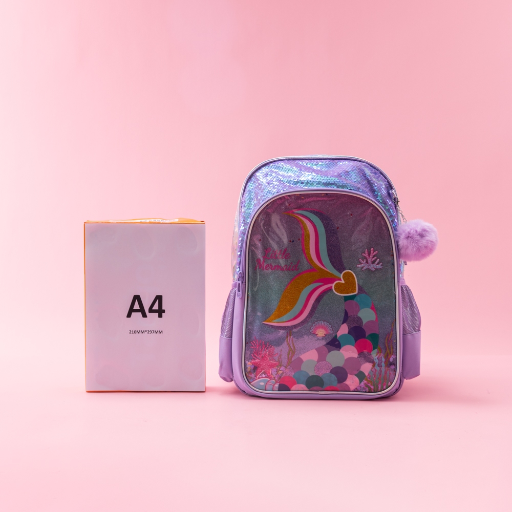 🔥【Alta Qualidade】Mochila Infantil Escolar Sereia Brilhante Bolsa Menina Resistente KMA4312-WB carol