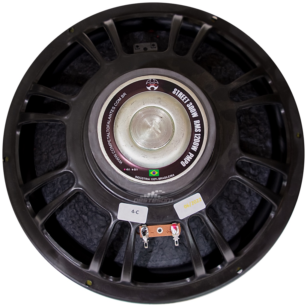 Modelo Disponível: • Bobina Simples 4 Ohms Especificação Técnica: • Diâmetro Nominal: 12 Polegadas • Potência RMS: 300W RMS • Potência Musical (PMPO): 600w • Impedância Nominal: 4 Ohms • Resposta de Frequência: 70 a 4,800 Hz • Sensibilidade: 85 dB • Bobina Simples • Diâmetro da Bobina: 2 Polegadas • Diâmetro Aproximado do Ímã: 13,5cm • Altura Aproximada do Ímã: 4cm • Dimensões Aproximadas (DxP): 31x15cm Conteúdo da Embalagem: • 01 Subwoofer