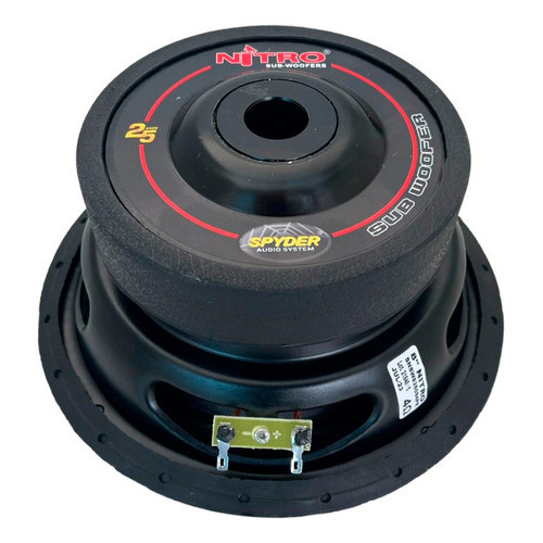 ALTO FALANTE SPYDER SUBWOOFER 8 POL NITRO 350 WATTS RMS 4 OHMS QUANTIDADE DE FALANTES = 1 A linha NITRO de Subwoofer , em sua quinta geração reúne o melhor em qualidade e potência , destacando por seu ótimo rendimento desde de seu lançamento a 15 anos , Consolidado no mercado o Subwoofer NITRO impressiona pela qualidade e capacidade de reproduzir frequência baixas , criado para competições de SPL , onde sempre se destacou com inúmeros recordes, mantem seu publico fiel de admiradores de subgraves . - Descrição do produto MATERIAL DA CARCAÇA – AÇO CARBONO CONJUNTO MAGNÉTICO – DUPLA VENTILAÇÃO E REBAIXO P ALTA EXCURSÃO DIÃMETRO DO IMÃ – 1 X 134MM CONE – CELULOSE COM FIBRAS BOBINA – 45 MM COBRE, CORPO EM KAPTON CENTRAGEM – DUPLA DE ALTA EXCURSÃO - Dimensões DIÃMETRO TOTAL EXTERNO – 204 MM DIÃMETRO CORTE CAIXA – 181 MM TAMANHO IMÃ TOTAL – 141 MM PROFUNDIDADE TOTAL – 93 MM - Parâmetros Thiele small SENS 1W/1M – 87,9 DB FS – 38 HZ RE 1,8 ohms – 3,6 ohms QTS – 0,64 QES – 0,67 QMS – 16,9 VAZ 11,86 LITROS - Especificações Gerais MODELO – NITRO 8 POL 350W DIÃMETRO – 8 POLEGADAS VERSÃOES DISPONÍVEIS : BOBINA SIMPLES DE 2OHMS E 4 OHMS POTÊNCIA MUSICAL – 1400 WATTS PMPO POTÊNCIA RMS – 350 WATTS RESPOSTA DE FREQUENCIA 25HZ A 1500HZ