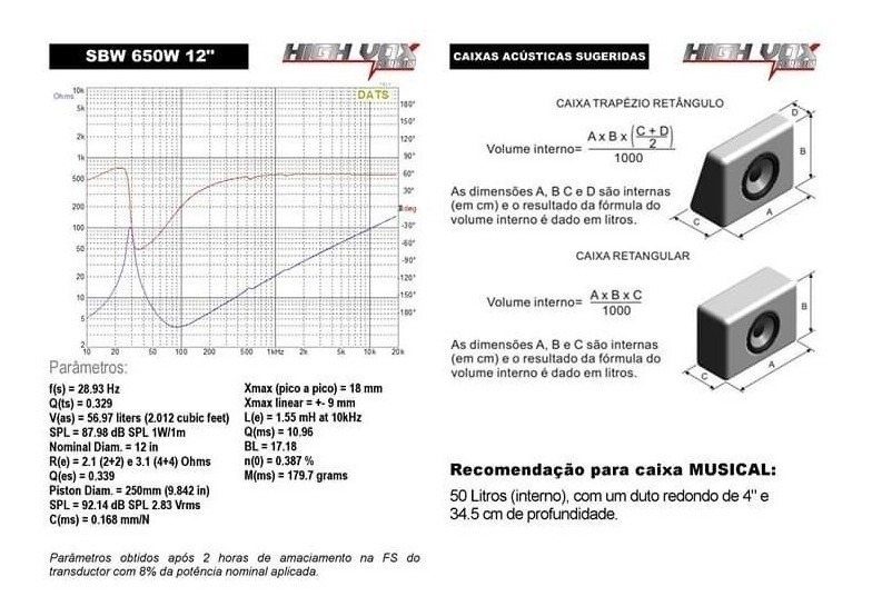 A Aleta Online tem o prazer de oferecer mais um produto de excelente qualidade, com um otimo precos para voce. Nossos produtos sao enviados em 24hrs e excelentemente embalados para sua seguranca. Estamos a disposicao para qualquer duvida sobre o produto. Somos uma empresa honesta e estamos prontos para resolver qualquer problema que possa ocorrer com a sua compra. TORMENTO SUBWOOFER SBW 650W O SBW e um potente alto-falante de 650W RMS de 12 polegadas de excelente resposta de frequencia proporcionando graves mais encorpados, somando qualidade ao som do seu carro. Descricao e Especificacoes Tecnicas . Linha Automotiva - Subwoofer . Diametro: 12 Polegadas . Subwoofer SBW . Potencia Maxima: 650 Watts RMS . Impedancia: 4 Ohms (Bobina simples) IMPORTANTE!!! -Se possivel em caso de compra de mais de uma unidade, realizar compras unitarias para evitar que os produtos tenham possiveis danos durante o transporte. -Verifique a compatibilidade do produto com seus equipamentos. -A instalacao deve ser feita por um profissional capacitado, nao nos responsabilizamos por uso indevido ou instalacao incorreta. Produto a pronta entrega PRAZO DE 24 HORAS PARA POSTAGEM. GARANTIA 6 meses contra defeito de fabricacao