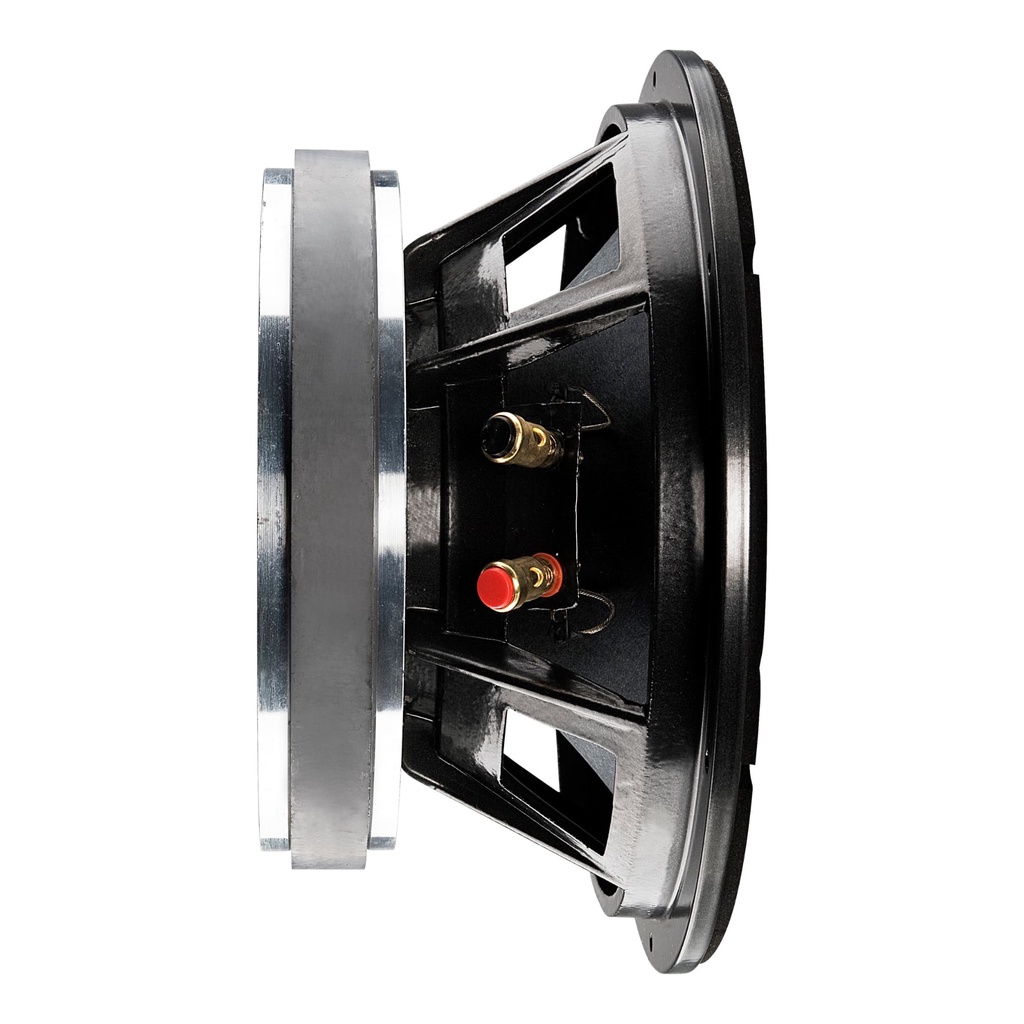 Com um tamanho compacto de 10 polegadas, o Woofer Eros E310H tem uma ótima potência RMS de 300W, excelente resposta de frequência, sensibilidade alta, confirmando a qualidade de som que ele é capaz de reproduzir. É fabricado no modelo de bobina simples com 8 Ohms de impedância, em carcaça de alumínio muito resistente. Especificações Técnicas • Diâmetro Nominal: 10 Polegadas • Material do Ferrite: Bário • Diâmetro da Bobina: 3 polegadas • Forma da Bobina: FIBERGLASS • Altura da Bobina: 11 mm • Material do Fio da Bobina: Cobre • Secção do Fio da Bobina: Chata • Material da Carcaça: Alumínio • Reposta de Frequência: 100 ~ 5.000 Hz • Sensibilidade (@ 1 W, 1 m) - FREE-AIR: 97,19 dB • Potência Máxima (RMS): 300 W • Impedância Nominal: 8 Ohms • RE: 5,2 Ohms/Vcc • Frequência de Ressonância: 68,45 Hz • Volume Equivalente: 25,078 L • Q Mecânico: 16,76 (Qms) • Q Elétrico: 0,236 (Qes) • Q Total: 0,233 (Qts) • Produto BL: 19,18 TM • NO (Referencial de Eficiência): 3,29 %