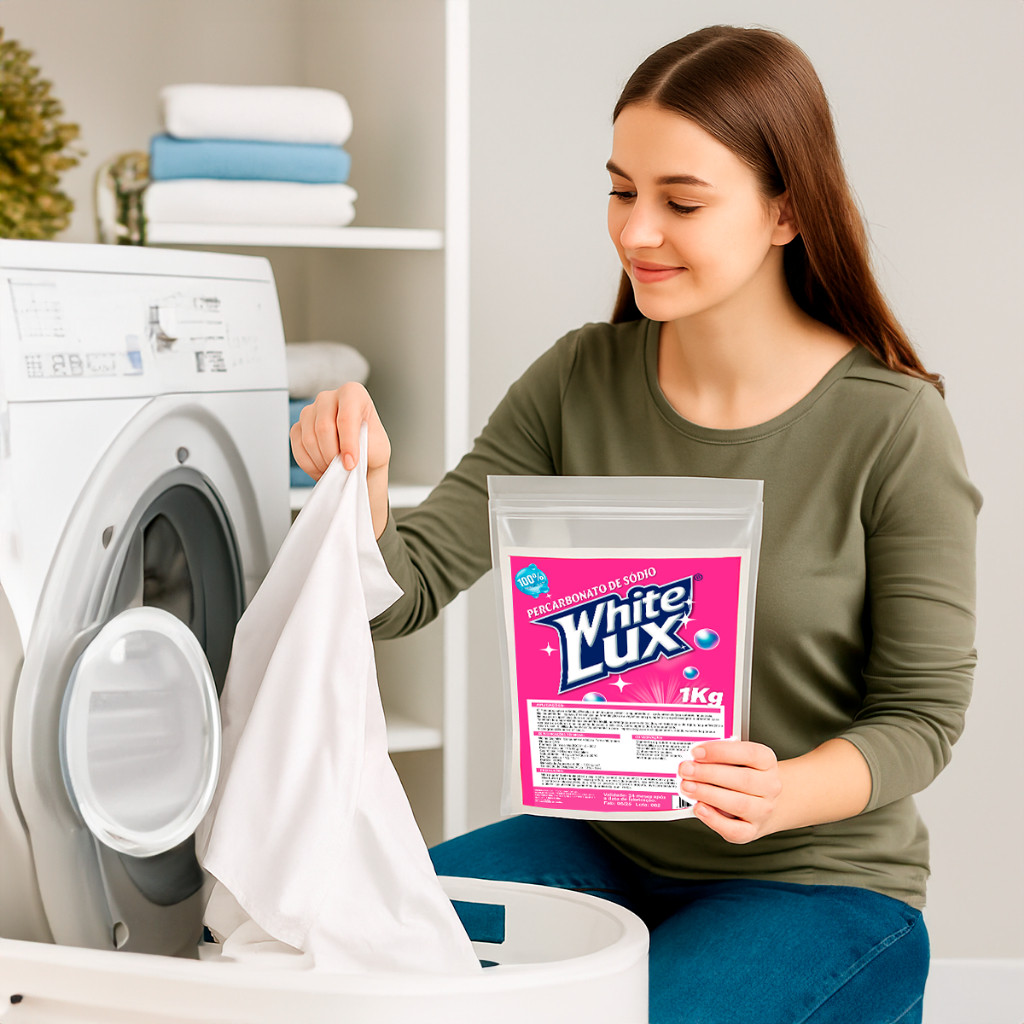 O Percarbonato Whitelux é um poderoso agente de limpeza ecológico e multifuncional, desenvolvido para quem busca alternativas sustentáveis e eficientes para o dia a dia. **Principais benefícios:** - Branqueador natural e ecológico; - Remove manchas difíceis de roupas e superfícies; - Desinfetante poderoso e seguro; - Produto biodegradável, livre de agentes químicos agressivos; - Versátil: pode ser usado na limpeza de roupas, pisos, azulejos e utensílios domésticos. 1. Para roupas brancas ou de cores firmes Função: Clarear, tirar manchas, higienizar Como usar: Máquina de lavar: Adicione 1 a 2 colheres de sopa junto com o sabão, no compartimento ou diretamente no tambor. Molho pré-lavagem: Dissolva 2 colheres de sopa em 5 litros de água quente. Deixe de molho por até 6 horas e depois lave normalmente. Ajuda a tirar manchas de mofo, suor, sangue, vinho, etc. 2. Para limpar pisos, rejuntes e banheiros Função: Clarear rejuntes, desinfetar e tirar mofo Como usar: Misture 2 colheres de sopa em 1 litro de água quente. Aplique sobre a superfície (rejuntes, azulejos, box, vaso sanitário). Deixe agir por 10 a 20 minutos. Esfregue com escova e enxágue. 3. Para higienizar louças e utensílios Como usar: Dissolva 1 colher de sopa em 1 litro de água quente. Deixe os utensílios de molho por 15–30 minutos. Lave normalmente. 4. Para desinfetar panos, esponjas e tábuas Como usar: Deixe de molho em uma solução de 2 colheres de sopa para cada litro de água quente. Aguarde 15 a 30 minutos e enxágue. 5. Para limpar colchões, sofás e estofados (sem encharcar) Como usar: Misture 1 colher de sopa em 500 ml de água morna. Aplique com pano úmido ou borrifador em áreas manchadas. Deixe agir por 15 minutos. Remova o excesso com pano limpo.
