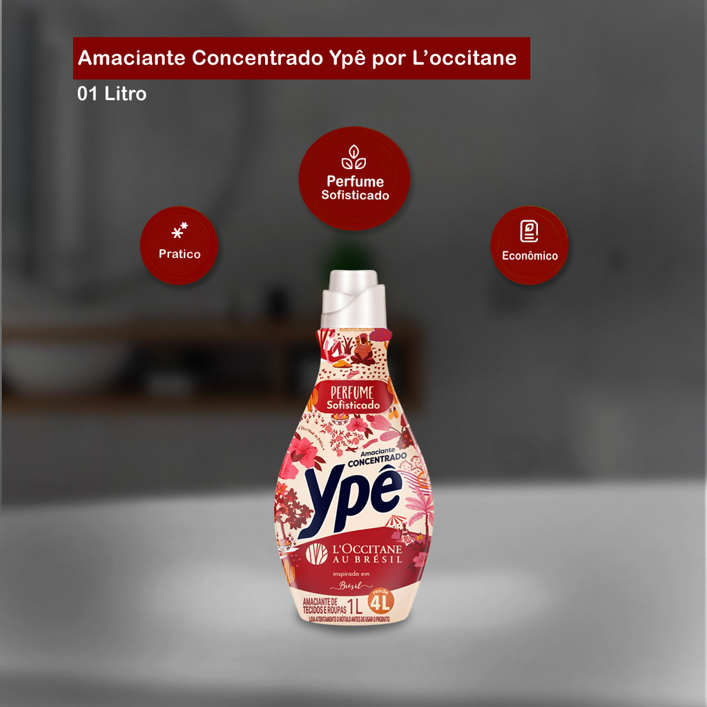 Amaciante Concentrado Brésil 1L Ypê por L'occitane Transporte-se para uma experiência perfumada e surpreendente! Um amaciante para roupas com perfume inspirado em Brésil, fragrância marcante e sofisticada de L'Occitane au Brésil, que combina notas cítricas e verdes com um corpo floral transparente e fundo amadeirado. Ao escolher essa versão da Ypê, você leva para casa não apenas um amaciante eficiente no cuidado com os tecidos, mas também uma experiência sensorial inspirada na perfumaria fine fragrance. Indicação de Uso: - Ideal para roupas brancas ou coloridas de uso diário, como camisetas, lençóis, toalhas, entre outros itens de vestuário e cama, trazendo cuidado especial a todas as peças. Modo de Uso: - Use meia tampa (20ml) do produto para 11kg de roupas; - Deixe agir por 10 minutos e complete o processo. Fragrância: Inspirado em Brésil Embalagem: 01 frasco de 1L