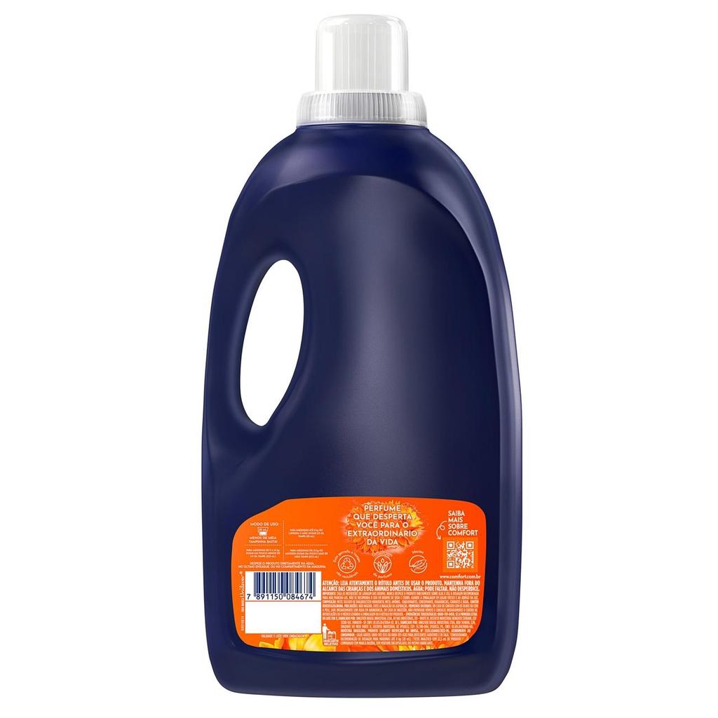 • O Amaciante Concentrado Comfort Energia Floral proporciona 10x mais perfume**, contém óleo de argan***** e cápsulas de perfume que garantem uma fragrância intensa e duradoura para suas roupas • O Amaciante Concentrado Comfort Energia Floral tem ótimo rendimento, menos de meia tampinha basta na sua lavagem*! Rende mais que 13 Litros e 150 lavagens* • O Amaciante Concentrado Comfort Energia Floral possui óleo de argan*****, que cuida intensamente das suas roupas enquanto as perfuma por muito tempo • Esse amaciante de roupa possui cápsulas de perfume para roupas que blindam contra o mau odor**** e perfumam sua lavanderia • Comfort previne suas peças dos danos da lavagem de roupa, mantendo as cores*** dos tecidos vibrantes e evitando a formação de bolinhas*** e esgarçamento*** • Comfort pensa nas suas roupas e no meio ambiente! Além de ser concentrado, sua garrafa e tampa são feitas de plástico 100% reciclado e reciclável O Amaciante Concentrado Comfort Energia Floral tem 10x mais perfume** de longa duração, por isso deixa suas roupas perfumadas por muito mais tempo. Sua formulação incrível possui cápsulas de perfume que são liberadas durante a lavagem para deixar uma fragrância duradoura nas suas roupas e blindar o tecido contra o mau odor****. O amaciante de roupa Comfort concentrado possui perfume encapsulado que penetra no tecido durante o processo de lavagem, deixando sua roupa muito mais cheirosa até mesmo depois de seca! **Teste analítico com 22,5 ml de produto comparado com marca diluída, sem perfume encapsulado do mesmo fabricante. ***Benefícios de tratamento do amaciante obtidos versus roupas lavadas sem amaciante. ****Baseado em testes realizados com odores representativos. *****Com óleo de argan na composição da fragrância.