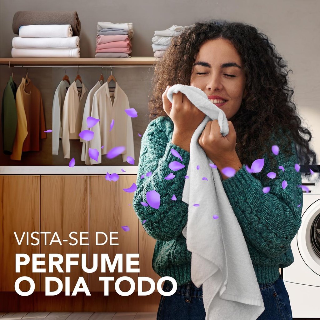 Vista-se de perfume o dia todo com o amaciante Downy Concentrado Seiva de Alfazema, inspirado na icônica e original colônia Seiva de Alfazema, é perfeito para manter suas roupas perfumadas por muito tempo*. Essa versão conta com um toque de Lavanda Extra que deixará as roupas cheirosas o dia todo, graças a sua fórmula com cápsulas de perfume que liberam uma fragrância deliciosa a cada toque. Sinta o delicioso perfume delicado da lavanda, acompanhado das notas suaves de pessego e líros-do-vale com o Amaciante Downy Seiva de Alfazema. Além do perfume que dura, outro benefício do seu amaciante da marca Nº1¨ é trazer muito mais maciez e proteção para os tecidos, você vai sentir a diferença na hora do passar de roupas. Além de proteger a sua roupa contra maus cheiros°. O amaciante Downy Seiva de Alfazema é muito fácil de utilizar, basta despejar a quantidade de líquido indicada na embalagem no dispenser automático da máquina de lavar. Caso prefira por o amaciante manualmente, coloque Downy na água no último enxágue, nunca diretamente sobre as roupas para evitar manchas.^ Downy concentrado vs. amaciantes não concentrados baseado nas instruções de uso do fabricante° Baseado em provas realizadas com conjunto de odores representativos.¨ Baseado em dados Nielsen Brasil, para o ano de 2021* Concentração de perfume depositada e liberada do tecido seco medida por métodos analíticos vs. amaciantes não concentrados • VISTA-SE DE PERFUME O DIA TODO: com o amaciante Downy Concentrado. Esse amaciante concentrado é perfeito para manter suas roupas com aquele perfume gostoso por muito tempo • PERFUME A LAVANDA QUE DURA E RENDE MAIS*: O amaciante Downy Alfazema, inspirado na icônica e original colônia Seiva de Alfazema, tem um toque de Lavanda Extra que deixará as roupas cheirosas o dia todo • RENDE MAIS: O amaciante Downy é concentrado e 1.5L rende como 6L^ dos amaciantes comuns, sem precisar diluir em água • AMACIANTE N° 1 NO BRASIL: Downy e o amaciante N° 1 no Brasil¹ • COM CÁPSULAS DE PERFUME: O amaciante de roupas Downy possui uma tecnologia com cápsulas de perfume que são liberadas ao toque • PROTEGE DE MAUS CHEIROS: O amaciante concentrado Downy possui ótima proteção contra maus cheiros°, além de deixar roupas macias com uma aparência impecável • MENOS DE MEIA TAMPINHA BASTA: Com menos de meia tampinha de amaciante concentrado Downy, você pode sentir o perfume de Downy e obter todos os seus benefícios • MODO DE USAR: Para lavadoras de 9 a 14 kg ou lavagem à mão, utilize 1/3 de tampa (20 ml) de amaciante Downy. Para mais perfume ou lavadoras maiores (+15 kg), utilize 1 tampa