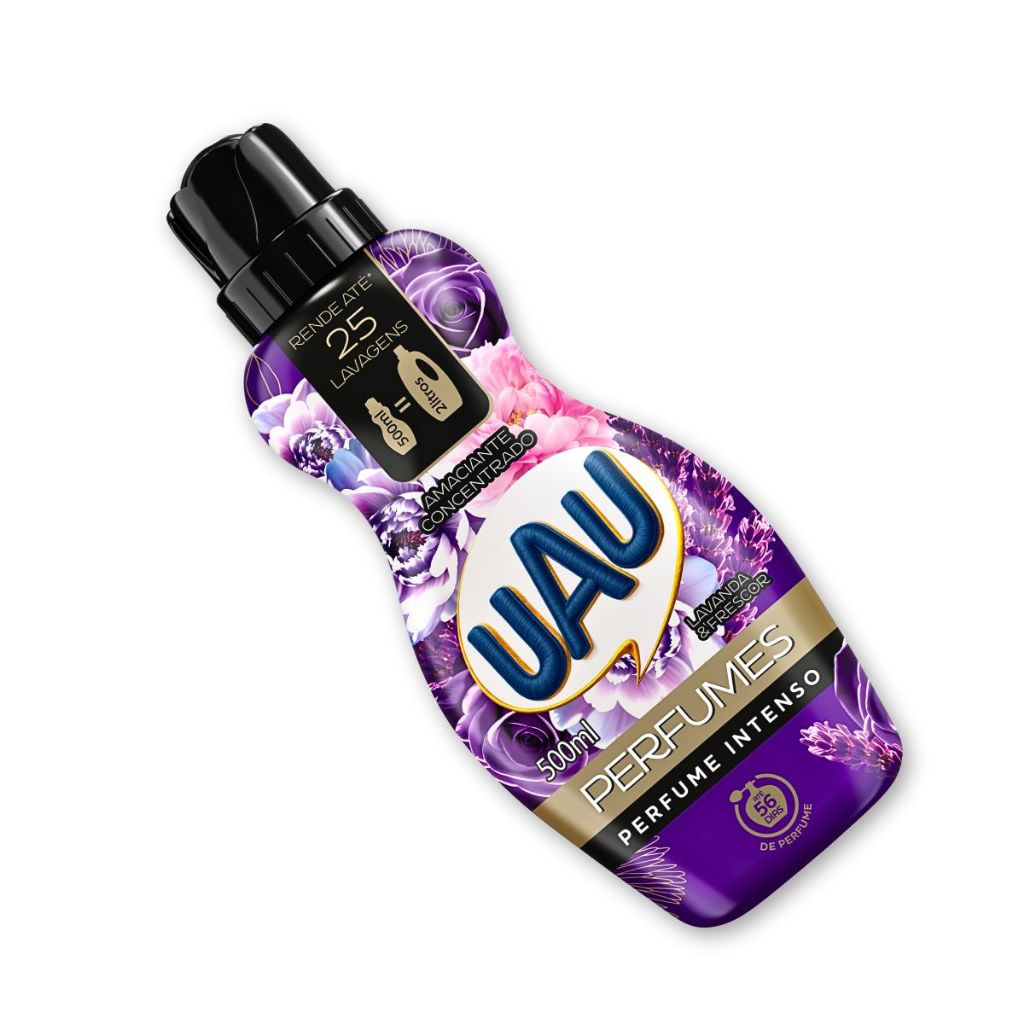 Roupas macias e perfumadas para dias surpreendentes! Sua fórmula exclusiva conta com microcápsulas que liberam perfume por muito mais tempo. Sinta o perfume! O Amaciante Concentrado UAU Perfumes é uma nova experiência sensorial, inspirado em perfumaria fina internacional. O produto é concentrado, por isso meia tampa a cada 5 kg de roupa no compartimento de amaciante da máquina é o suficiente. Se for lavar na mão, no último enxágue encha o tanque com 10 litros de água e adicione meia tampa do produto. Misture bem a água com as mãos e mergulhe as roupas. Espere por 5 a 10 minutos, torça as roupas e pendure. Dica: evite manchas, não coloque o produto diretamente sobre o tecido.