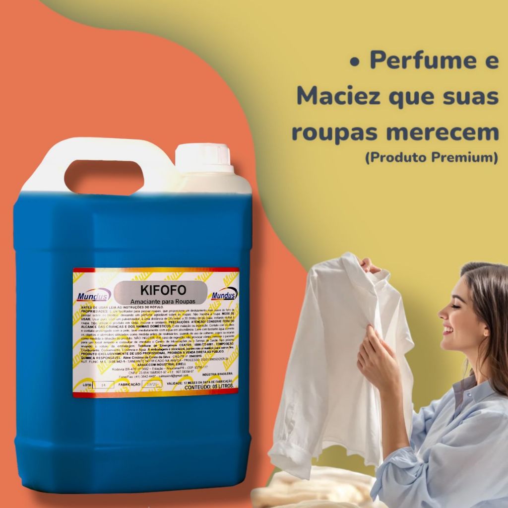 AMACIANTE CREMOSO KIFOFO MUNDUS 5 L Nosso amaciante atende lavanderias profissionais e consumidores que buscam qualidade, eficiência e rendimento, trazendo em sua fórmula o que há de melhor no mercado para poder atender as necessidades de padrão de qualidade. CARACTERISTICAS E ESPECÍFICAÇÕES * Fragrância Lavanderia profissional Conforto * Cuida das fibras trazendo maciez * Muito usado em lavanderias profissionais * Se necessário dilua com um pouco de água * Espessura Grossa concentrada * linha premium * Faz você economizar dinheiro * 5 Litros * Não Mancha * Todos os tipos de roupas e tecidos * Tipo de embalagem: Galão 5 Litros * Tecnologia avançada de compactação para maior rendimento * Fórmula que não deixa resíduos que danificam as roupas * ideal para cuidado das roupas * Adequado para roupas delicadas e pesadas * Rende aproximadamente até 400 kg de roupas limpas. * indique para um amigo SOBRE O VENDEDOR: * Nossa Empresa foi criada única e exclusivamente com o foco em distribuição na linha de produtos da Industria MUNDUS * Nosso maior compromisso é com o cliente, enviando nossos produtos dentro do prazo, e auxiliando nossos clientes em ter a melhor experiência em compras, evitando transtornos. * Temos contato exclusivo e direto com os gestores de produção, portanto, quais quer dúvidas saberemos exatamente como orientar. * Não temos problemas com falta de estoque, Pediu chegou!