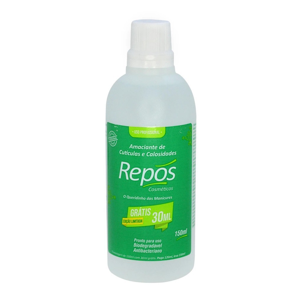 Bem vindos ao nosso anúncio!! Composição: 1 Amaciante Líquido de Cutículas e Calosidades 120ml + 30ml (Grátis) Repos 1 Raspador Para Spa Dos Pés Rapapé Removedor De Calosidades ( A COR DO RASPADOR É ENVIADO DE ACORDO A DISPONIBILIDADE EM ESTOQUE ). Repos Amaciante Líquido de Cutículas e Calosidades - É um Amolecedor de Cutículas e Calosidades que propõe para os profissionais de Manicure, Pedicure e Podologia muito mais agilidade em suas atividades de remoção das cutículas e também é perfeito para a raspagem das calosidades dos pés, pois o produto proporciona: - Economia, Praticidade e Higiene. - Amolece as cutículas sem uso de água, com isso você não precisará deixar as unhas das mãos ou dos pés de molho na água, não usará bacias, nem luvas descartáveis para amolecer as cutículas. - Perfeito para amolecer as calosidades dos pés e fazer a raspagem. - Não tem cheiro e não deixa as unhas amarelas. - Produto antibacteriano e biodegradável. - Fácil de usar lhe proporcionando mais ganho de tempo no dia a dia. - Produto de Qualidade. - Modo de usar nas Cutículas : Aplique sobre as cutículas, espere apenas 10 segundos e comece a remover facilmente a cutícula. - Modo de usar nas Calosidades ou Células Mortas: Aplique diretamente sobre a parte afetada e aguarde até 3 minutos, em seguida utilize a espátula apropriada para a realização raspagem. O Rapapé foi desenvolvido especialmente para auxiliar a remoção de calosidades nos procedimentos como SPA dos pés e plástica dos pés. Material esterilizável em autoclave. Composição: nylon com fibra de vidro e aço inox. Vantagens que você encontrará: - O Rapapé pode ser esterilizado - O cabo é ergonômico - A lâmina pode ser utilizada dos dois lados - Duração deste produto é por tempo indeterminado, ou seja, gera economia na compra de espátulas - Agiliza o processo de raspagem no SPA dos pés - Proporciona uma raspagem uniforme.