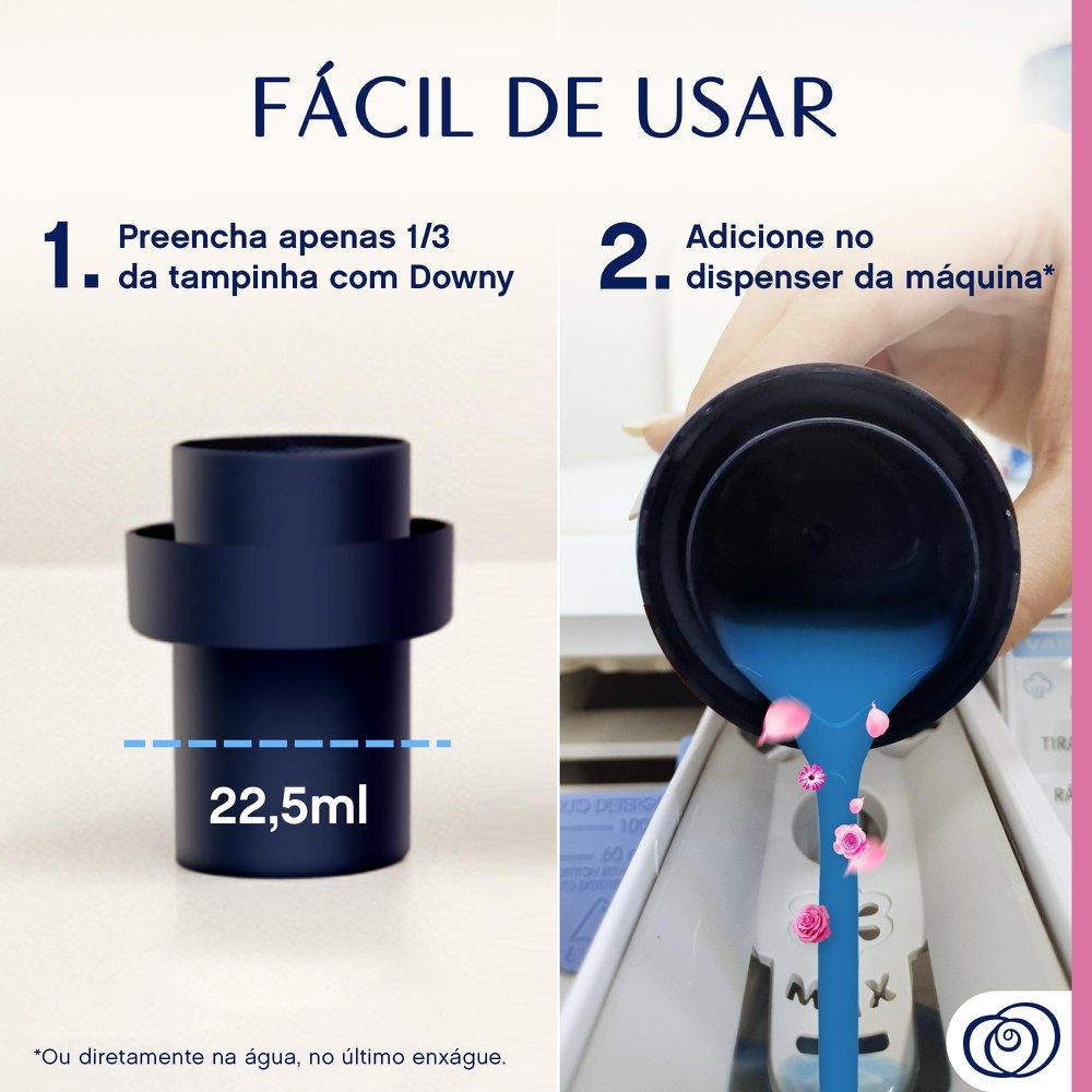 Amaciante Downy Concentrado Brisa Intenso? é uma nova versão do já conhecido e amado Brisa de Verão, de Downy - marca de amaciantes nº 1 do Brasil¨. Com o mesmo perfume? e longa duração nas roupas, mas agora com perfume mais intenso ?, dando às suas roupas um aroma deliciosamente agradável que as transformará em uma verdadeira experiência de perfume, com notas frutadas e florais. Esse amaciante deixa suas roupas macias, protege as fibras dos tecidos durante a lavagem e facilita a passagem a ferro depois de lavar. Além disso, protege a sua roupa contra maus cheiros°, incluindo fumaça, cheiro de fritura e peixe, com o benefício adicional de um perfume mais intenso?. Aproveite esse perfume mais intenso? do seu Downy azul, que você já ama, com os mesmos benefícios do seu amaciante favorito. Se combinado com o Sabão Líquido Ariel, as roupas ficam leves, confortáveis e lisinhas na hora de passar, além de ficarem protegidas contra os danos da lavagem. Modo de Usar: Para lavadoras de 9 a 14 kg ou lavagem à mão, utilize 1/3 de tampa (22,5 ml). Para mais perfume ou lavadoras maiores (+15 kg), utilize 1 tampa. · O amaciante Downy concentrado rende até 44 lavagens · Ótima proteção contra maus cheiros° e roupas macias para uma aparência impecável · Downy Brisa Intenso é um amaciante concentrado equivalente a 4L de amaciante comum^ · Sua fórmula proporciona uma fragrância intensa? e duradoura a cada lavagem · Amaciante Nº1 do Brasil¨ e recomendado pela Electrolux · Para obter o resultado ideal com o amaciante, que deixe roupas macias, fáceis de passar e protegidas de odores° com perfume prolongado, use a quantidade indicada na embalagem. ^ Downy concentrado vs. amaciantes não concentrados baseado nas instruções de uso do fabricante ° Baseado em provas realizadas com conjunto de odores representativos. ? Em comparação com Brisa de verão regular ¨ Baseado em dados Nielsen Brasil, para o ano de 2021 * Concentração de perfume depositada e liberada do tecido seco medida por métodos analíticos vs. amaciantes não concentrados