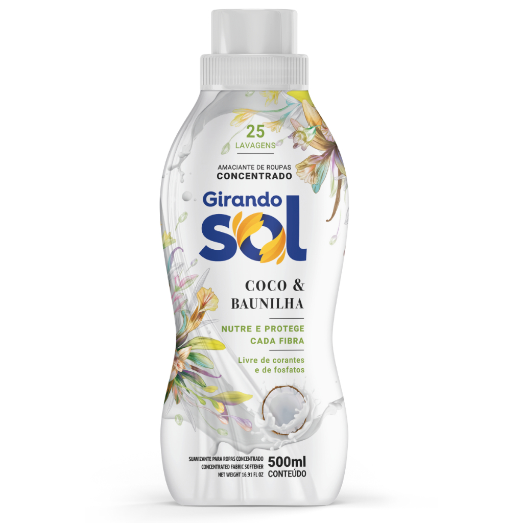 Amaciante Girando Sol Coco E Baunilha Concentrado 500ml - Rende até 25 Lavagens