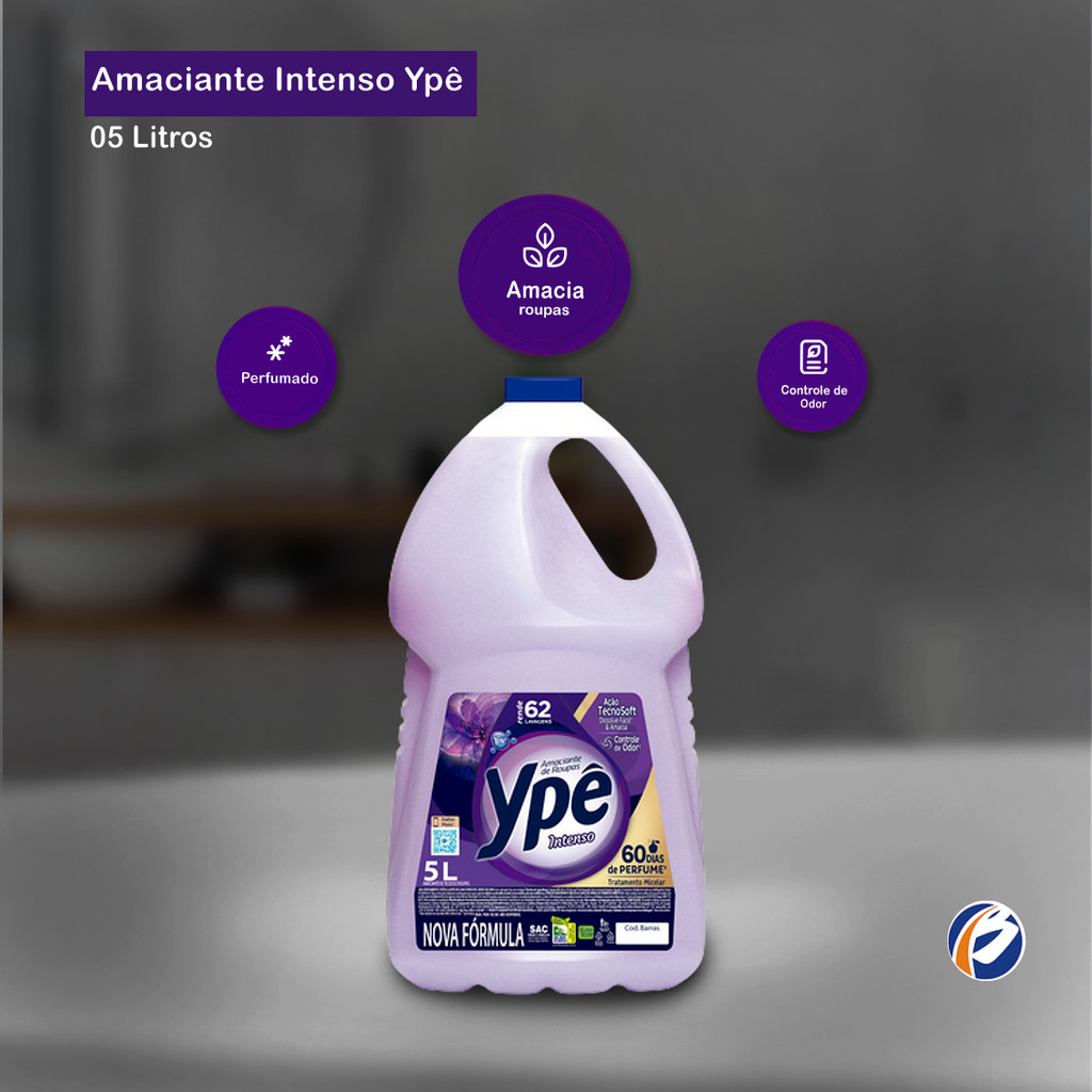 Amaciante Intenso 5L Ypê Os Amaciantes Tradicionais Ypê possuem tecnologia de cápsulas de perfume que deixam as roupas perfumadas por muito mais tempo. Sua fórmula conta com Ação Tecnosoft, que dissolve fácil durante a lavagem e garante maciez aos tecidos, possuindo também a tecnologia Powercaps que garante 60 dias de perfume, além de controlar o odor , garantindo perfumação duradoura. Indicação de Uso: - Lavagem de roupas brancas e coloridas Fragrância: Intenso Embalagem: 01 galão de 5L