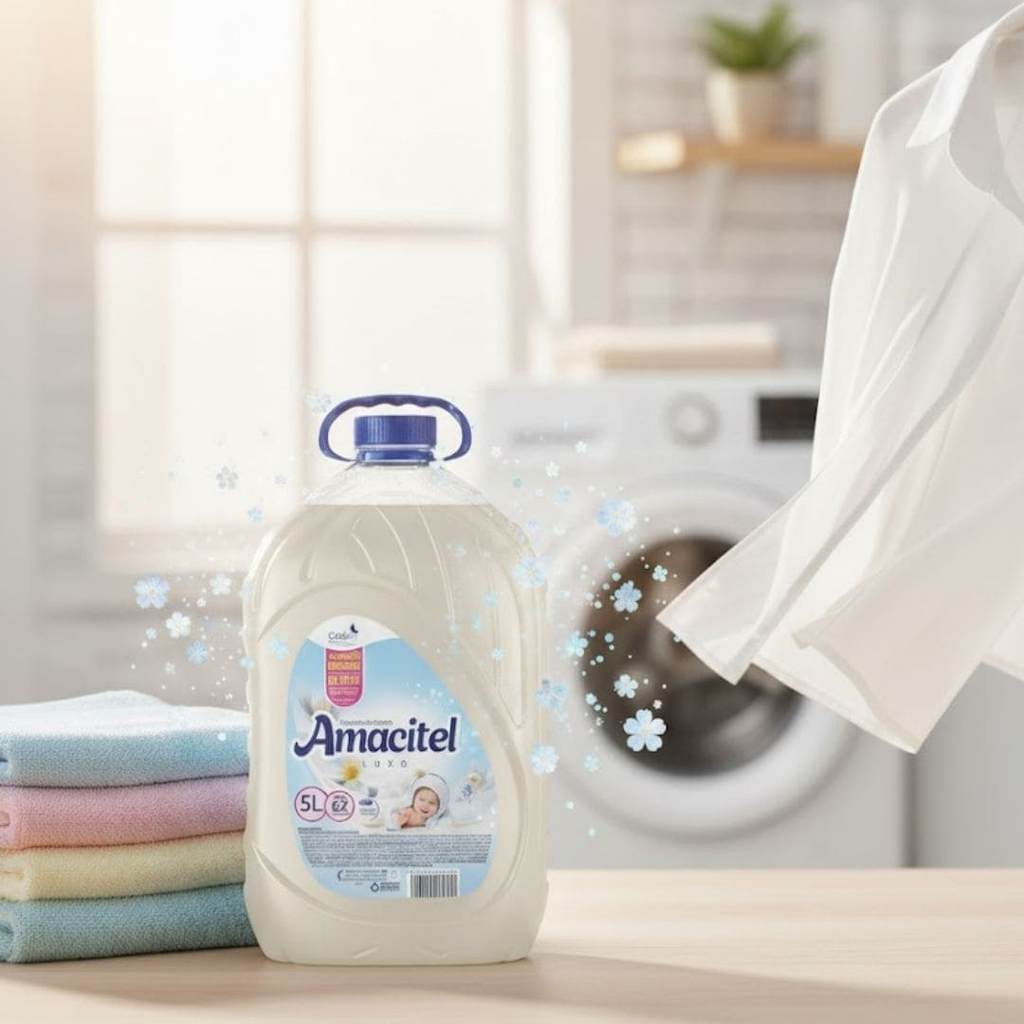 O Amaciante Amacitel Luxo Momento de Carinho 5L foi desenvolvido para proporcionar um toque ultra macio às roupas, garantindo conforto e cuidado em cada lavagem. Sua fórmula premium amacia os tecidos sem deixar resíduos, preservando a leveza e a qualidade das peças. Com perfume marcante e envolvente, criado para transmitir sensação de cuidado e carinho, este amaciante oferece fixação intensa, mantendo as roupas cheirosas por dias. Além disso, sua embalagem econômica de 5 litros garante excelente rendimento, ideal para quem busca praticidade e alta performance. Indicado para todos os tipos de tecidos, o Amacitel Luxo Momento de Carinho é perfeito para quem deseja unir maciez, perfume duradouro e qualidade superior, deixando o enxoval sempre bem cuidado e perfumado.