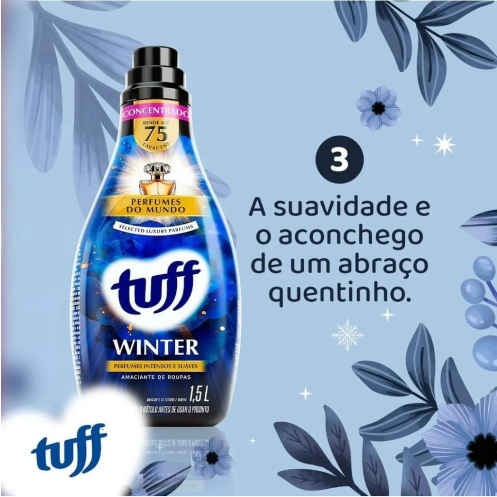 Amaciante Concentrado Tuff Provanza – Chá Branco (1,5L) Transforme o cuidado com suas roupas em uma experiência sensorial de luxo. O Amaciante Concentrado Tuff Provanza Chá Branco combina a eficiência tecnológica da Start com a sofisticação das fragrâncias finas, garantindo tecidos impecavelmente macios e perfumados por muito mais tempo. Por que escolher o Tuff Provanza Chá Branco? Fragrância Exclusiva: Notas delicadas e relaxantes de Chá Branco que proporcionam uma sensação de frescor, limpeza e bem-estar em cada peça. Máximo Rendimento: Por ser concentrado, sua embalagem de 1,5L rende até 50 lavagens, oferecendo muito mais economia e eficiência. Maciez Incrível: Atua profundamente nas fibras, facilitando o passar de roupas e deixando um toque sedoso e suave na pele. Proteção das Fibras: Ajuda a manter as cores vibrantes e as texturas originais dos tecidos, prolongando a vida útil das suas roupas favoritas. Ficha Técnica: Marca: Tuff (Start) Linha: Provanza Fragrância: Chá Branco Volume: 1,5 Litros Tipo: Amaciante Concentrado Rendimento: Até 50 doses (lavagens) Sugestão de Uso: Basta uma tampa pequena (conforme instruções no rótulo) diretamente no compartimento da máquina ou no último enxágue para obter resultados de lavanderia profissional na sua casa. Dica Pro: Para um resultado ainda melhor, combine o uso com a linha completa de cuidados têxteis da Tuff.
