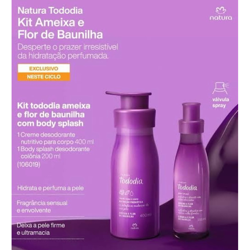 Ameixa e flor de baunilha Natura Tododia kit hidratante com Body splash