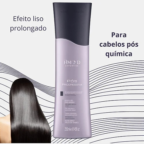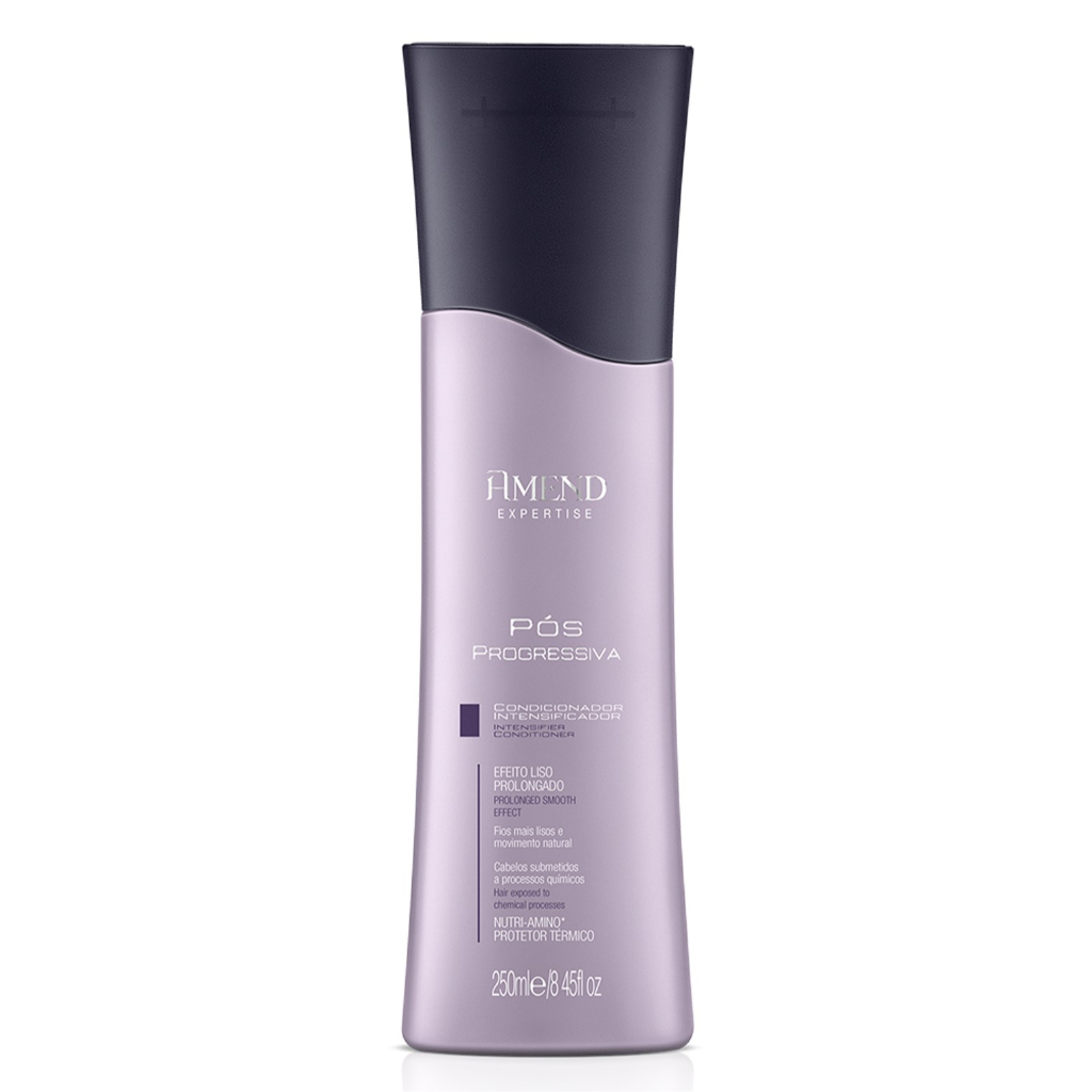 Condicionador Intensificador Amend Expertise Pós Progressiva 250ml, repara danos e repõe os aminoácidos perdidos durante o processo de escova. Prolonga o efeito liso, realça o brilho, maciez e o movimento natural dos fios. AÇÃO Condiciona e prolonga o efeito liso. PRINCÍPIOS ATIVOS Nutri-Aminoácidos e Protetor Térmico. COMO USAR Aplicar após o uso do shampoo ou da máscara. Evitar aplicar na raiz. Deixe agir por 3 minutos massageando suavemente. Enxágue bem.