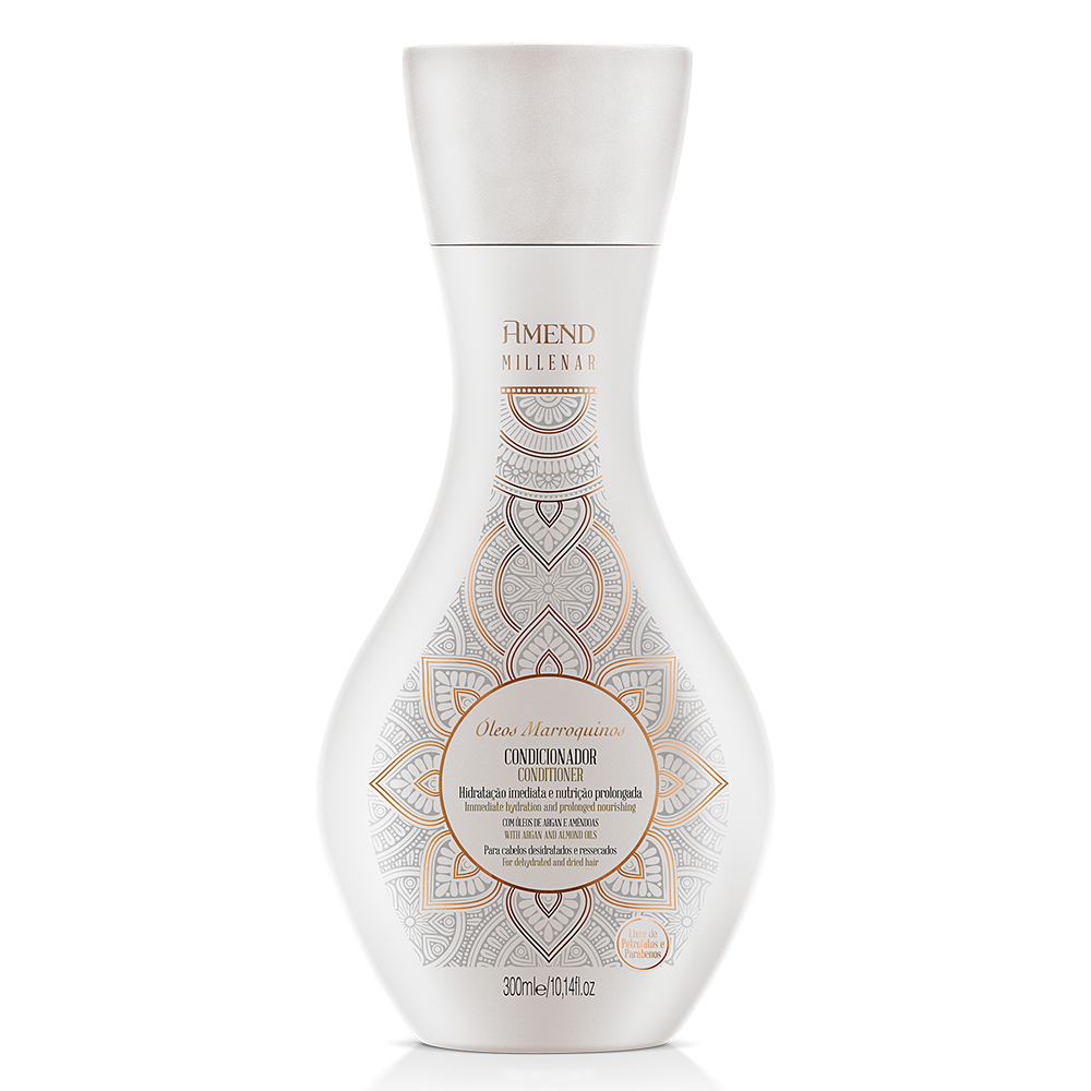 AMEND KIT MILLENAR ÓLEOS MARROQUINOS - 3 PRODUTOS COMPOSIÇÃO CARACTERÍSTICAS SHAMPOO AMEND MILLENAR ÓLEOS MARROQUINOS 300ML Shampoo Amend Millenar Óleos Marroquinos inspirados nos ingredientes usados há milênios no Marrocos para os cuidados da beleza, desenvolvemos um shampoo que limpa sem agredir os cabelos enquanto proporciona efeito suavizante, nutrição, maciez, elasticidade e hidratação aos fios, através da rica combinação dos óleos marroquinos e do potente ativo protetor e disciplinante extraído do Tamarindo. HAIR BUTTER MÁSCARA AMEND MILLENAR ÓLEOS MARROQUINOS 300G Hair Butter Máscara Amend Millenar Óleos Marroquinos inspirados nos ingredientes usados há milênios no Marrocos para os cuidados da beleza, desenvolvemos uma manteiga capilar com alto poder de hidratação e nutrição, que proporciona maciez, elasticidade e toque sedoso aos fios ásperos e ressecados, através da rica combinação dos óleos marroquinos, manteiga extraída do fruto da árvore do Karité e potente ativo protetor e disciplinante extraído do Tamarindo. CONDICIONADOR AMEND MILLENAR ÓLEOS MARROQUINOS 300ML Condicionador Amend Millenar Óleos Marroquinos inspirados nos ingredientes usados há milênios no Marrocos para os cuidados da beleza, desenvolvemos um condicionador que delicadamente proporciona condicionamento intenso, efeito suavizante, maciez, elasticidade e hidratação aos fios, através da rica combinação dos óleos marroquinos e do potente ativo protetor e disciplinante extraído do Tamarindo. AÇÃO SHAMPOO AMEND MILLENAR ÓLEOS MARROQUINOS 300ML Limpa sem agredir os cabelos enquanto proporciona efeito suavizante, nutrição, maciez, elasticidade e hidratação aos fios, através da rica combinação dos óleos marroquinos e do potente ativo protetor e disciplinante extraído do Tamarindo. HAIR BUTTER MÁSCARA AMEND MILLENAR ÓLEOS MARROQUINOS 300G Com alto poder de hidratação e nutrição, proporciona maciez, elasticidade e toque sedoso aos fios ásperos e ressecados, através da rica combinação dos óleos marroquinos, manteiga extraída do fruto da árvore do Karité e potente ativo protetor e disciplinante extraído do Tamarindo. CONDICIONADOR AMEND MILLENAR ÓLEOS MARROQUINOS 300ML Proporciona condicionamento intenso, efeito suavizante, maciez, elasticidade e hidratação aos fios, através da rica combinação dos óleos marroquinos e do potente ativo protetor e disciplinante extraído do Tamarindo. COMO USAR SHAMPOO AMEND MILLENAR ÓLEOS MARROQUINOS 300ML Aplicar nos cabelos molhados, massageando os fios com as pontas dos dedos. Enxágue e repita a operação. HAIR BUTTER MÁSCARA AMEND MILLENAR ÓLEOS MARROQUINOS 300G Após lavar os cabelos com o Shampoo Amend Millenar Oĺeos Marroquinos, retire o excesso de água com uma toalha e aplique a máscara do comprimento dos fios até as pontas, massageando mecha por mecha. Deixe agir por 03 minutos. Enxágue bem. Se desejar, aplique a seguir o condicionador para selar as cutículas. CONDICIONADOR AMEND MILLENAR ÓLEOS MARROQUINOS 300ML Aplicar nos cabelos molhados após o uso do Shampoo ou da Máscara Amend Millenar Oĺeos Marroquinos. Evitar aplicar na raiz. Massageie os fios suavemente e enxágue bem.