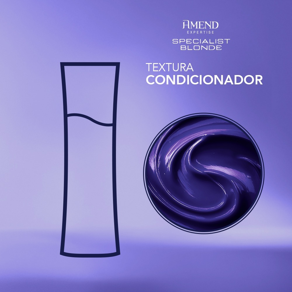 Amend Kit Specialist Blonde Shampoo e Condicionador MINI - 50ml O Amend Kit Specialist Blonde é o tratamento completo para cabelos loiros, descoloridos, grisalhos ou com mechas. Desenvolvido com pigmentos de alta afinidade, polissacarídeos nutri protetores e extrato de mirtilo, neutraliza os indesejáveis tons amarelados e alaranjados, enquanto fortalece e repara os fios danificados. Além de matizar de forma imediata, hidrata profundamente, reconstrói a fibra capilar e devolve brilho, elasticidade e maciez. Shampoo Specialist Blonde 50ml - Limpa suavemente e inicia o processo de matização - Neutraliza tons amarelados ou alaranjados desde a primeira aplicação - Fortalece os fios fragilizados pela descoloração - Melhora a elasticidade, luminosidade e maciez - Fórmula sem sal Condicionador Specialist Blonde 50ml - Proporciona hidratação intensa e efeito matizador imediato - Forma um escudo protetor que fortalece a fibra capilar - Neutraliza tons indesejados mantendo a cor bonita por mais tempo - Deixa os fios saudáveis, luminosos, macios e sem frizz