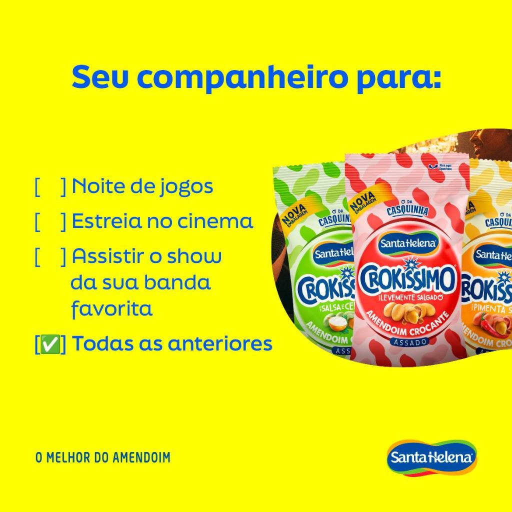 | Amendoim Crocante Crokíssimo 1,01kg Santa Helena Petiscos Festa este produto | R$ 34,49 | — | 4.9/5 | 48 |