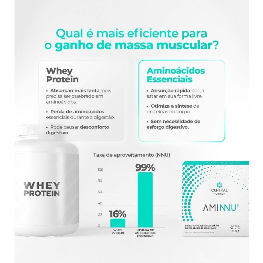 | Aminnu EAAs Aminoácidos Essenciais 30 Sachês de 10g - Central Nutri... este produto | R$ 245,54 | 11% | 5.0/5 | 10 |