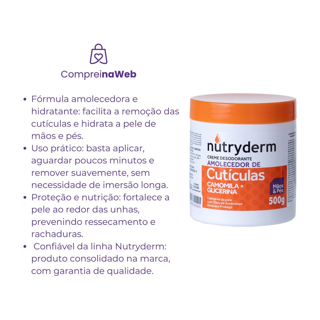 | Amolecedor De Cuticulas Nutryderm 500g este produto | R$ 32,25 | — | 4.9/5 | 6 |