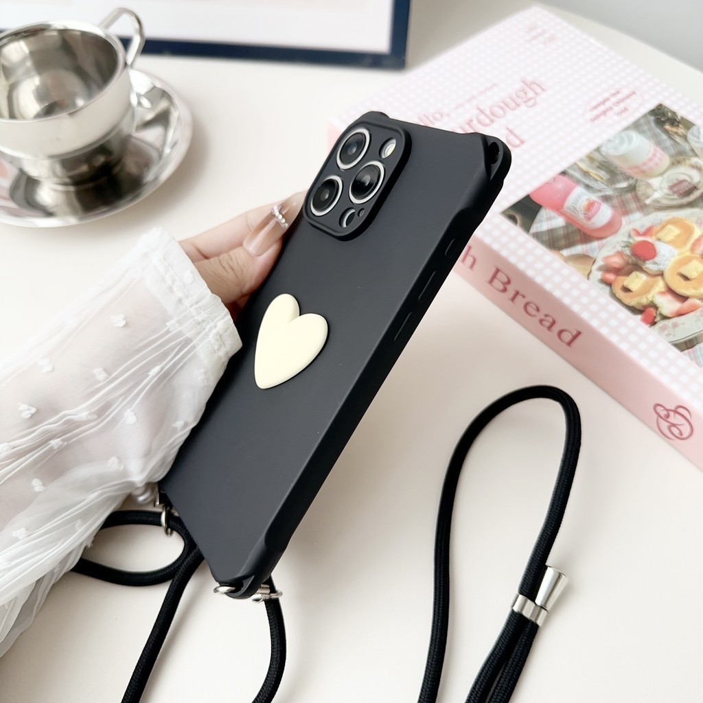 Amor Coração Macio TPU Caso De Telefone Com Colar Crossbody Cordão iPhone 13 14 15 Pro Max 15Plus 16 12 11 X XS XR 7 8 P