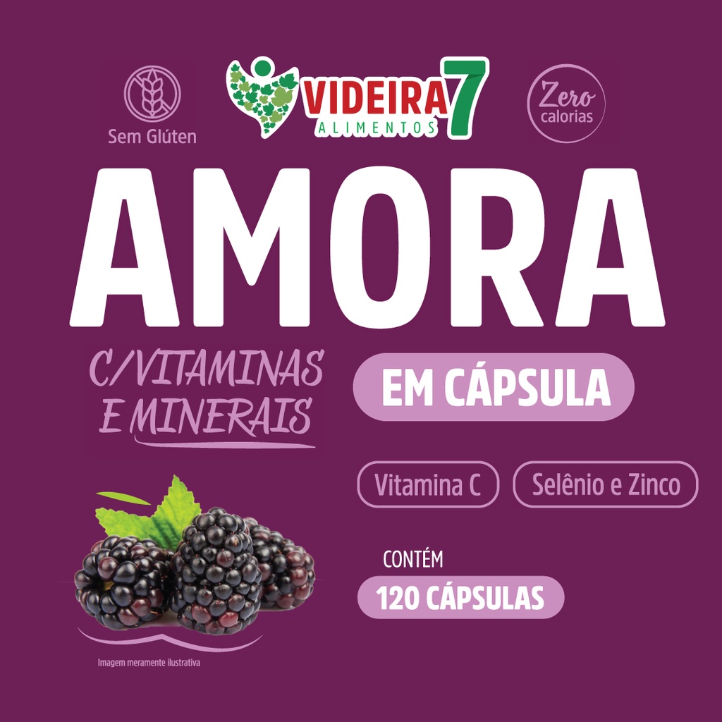 Sobre o produto: Suplemento alimentar de Vitamina C, Selênio e Zinco com polpa de Amora em cápsulas. A vitamina C auxilia no funcionamento do sistema imune. O selênio é um antioxidante que auxilia na proteção dos danos causados pelos radicais livres. O zinco contribui para a manutenção do cabelo, da pele e das unhas. Recomendação de Uso: Consumir 03 capsulas por dia Cuidados de Conservação: Manter o produto em lugar seco e arejado. Após aberta a embalagem, manter a tampa bem fechada para garantir as características do produto e recomenda-se o consumo em até 90 dias. Ingredientes:, Polpa de Amora desidratada, Acido Ascórbico, Selenito de sódio, Bisciglicinato de zinco . Composição da capsula: gelatina, glicerina e agua purificada NÃO CONTÉM GLÚTEN. Sobre o envio: A PRONTA ENTREGA- ENVIO EM ATÉ 24 HORAS ÚTEIS! DÚVIDAS DE SEMPRE: 1) E se meu produto não chegar? TODOS OS PACOTES SEGUEM COM O PROTOCOLO DE RASTREIO E VOCÊ PODE CONSULTAR DIARIAMENTE PARA VER ONDE ELE ESTA, CASO OCORRA ALGUM SINISTRO A MERCADORIA ESTÁ ASSEGURADA PELO SISTEMA DO MARKETPLACE E VOCÊ RECEBE SEU DINHEIRO DE VOLTA. 2) Qual a validade? VOCÊ IRÁ ENCONTRAR A VALIDADE ASSIM COMO O NÚMERO DO LOTE NA PARTE SUPERIOR DA EMBALAGEM. TRABALHAMOS APENAS COM PRODUTOS FRESCOS, DESSA FORMA VOCÊ RECEBERÁ O PRODUTO COM UMA VALIDADE EXTENSA. DEPENDENDO DO PRODUTO, DE ATÉ 2 ANOS. Ficou com alguma dúvida? Entre em contato com a gente!