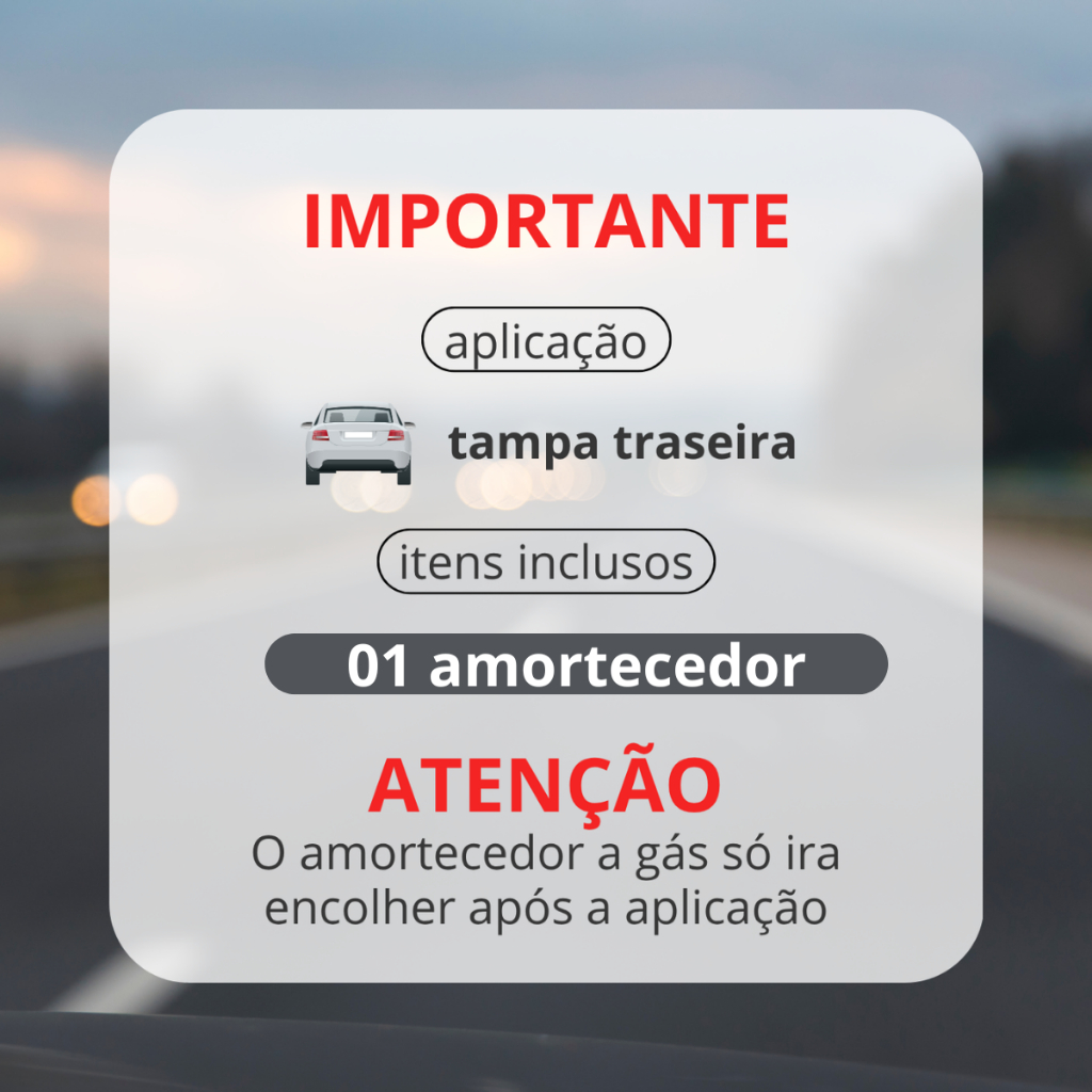 Amortecedor a Gás para Tampa Traseira – Uno Geração 1 (1984 a 2010) Conforto, estabilidade e mais segurança para o porta-malas do seu veículo. Compatibilidade: • Uno G1 (Uno Quadrado) – de 1984 até 2010 • Uno Mille • Uno Way • Uno Economy Produto desenvolvido para encaixe perfeito e funcionamento eficiente em todas as versões do Uno da geração 1. Informações do Produto: • Produto novo • Cor: Preto • Funcionamento: Mola a gás • Fixação: Por encaixe • Medida aproximada (ponta a ponta): 61 cm • Posição de montagem: Tampa traseira do porta-malas • Valor referente à unidade Itens Inclusos: • 01 amortecedor para tampa traseira Destaques do Produto: • Abertura e fechamento da tampa traseira de forma suave e segura • Evita impactos bruscos e ruídos indesejáveis • Acabamento discreto e construção resistente • Instalação rápida e prática, sem necessidade de adaptações • Custo-benefício ideal para manutenção ou reposição Atenção: • Não tente pressionar o amortecedor com as mãos. A ação correta só ocorre após a instalação no veículo. • As pontas do amortecedor são reguláveis por rosca, permitindo ajuste fino na fixação. • A instalação deve ser realizada por um profissional qualificado. Não nos responsabilizamos por mau uso ou instalação incorreta. Produto essencial para quem busca segurança, funcionalidade e bom acabamento no uso diário do porta-malas. Qualidade com preço acessível. Pronto para instalação. Garantia de fábrica: 15 dias