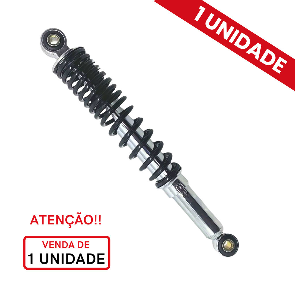>>>> ATENÇÃO <<<< Não é o PAR. Não é o PAR. Venda de Uma Peça, não é o PAR. >>> CONTEM <<< - 01 Amortecedor Traseiro. (UMA PEÇA) >>> ESPECIFICAÇÕES TÉCNICAS <<< - Marca: Motomo - Posição: Traseiro - Garantia: 03 Meses (contra defeito de fabricação) >>> APLICAÇÃO <<< - Honda Biz 100 ES/KS ==> (1998 a 2015) - Honda C 100 Biz ES/KS ==> (1998 a 2006) - Honda Biz 100+ ==> (2003 a 2005) - Honda Biz 110i ==> (2016 a 2025) - Honda Biz 125 ES/KS/EX+ ==> (2006 a 2023) - Honda Biz 125+ ==> (2006 a 2010) - Honda Pop 100 ==> (2006 a 2016) - Honda Pop 110i ==> (2015 a 2025) >>> Benefícios <<< - Amortecedor Motomo melhora a estabilidade da sua moto, proporcionando uma pilotagem mais suave, mesmo nas estradas mais acidentadas. - Amortecedor produzido seguindo os mais altos padrões de qualidade. - Não necessitam de adaptações. - Excelente custo benefício. - Fabricado no padrão do original de fábrica.