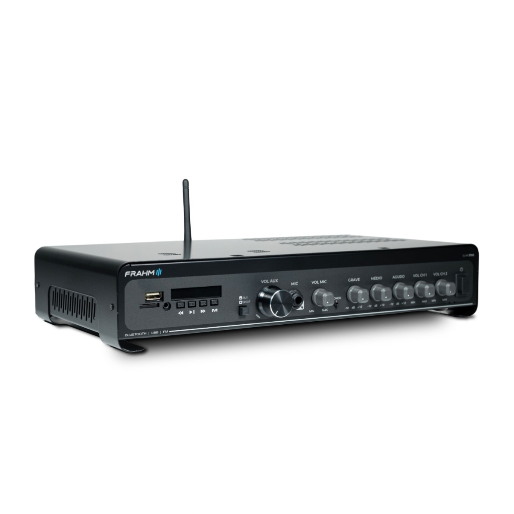 A linha nº1 em amplificador comercias do Brasil, chega em sua quinta geração (G5), trazendo ainda mais tecnologia e um visual único e inovador. Esta geração reflete toda a confiabilidade, sem perder sua essência. O amplificador Slim 3700 OPTICAL G5 com 240 Watts RMS de potência (2 canais de 120 W RMS). Amplificador que pode sonorizar 2 ambientes distintos, pois possui dois canais Independentes com controle de volume separados. Indicação de uso: • Restaurantes. • Conveniências. • Farmácias. • Lojas. • Clínicas. • Ambientes corporativos. • Mercados/supermercados e muitos outros. Benefícios: • Visual único e moderno. • Facilidade em sua operação. • Entradas para conexão de microfone. • Equalizador. • Entrada Optica. • Conexão auxiliar via RCA, USB, Bluetooth, P2M e Micro SD. Diferencias • Diferencial 1: Visual único e moderno – Seu visual com linhas curvas, reflete todas a inovação da linha líder em amplificadores. • Diferencial 2: Antena Bluetooth – Para melhorar ainda mais o alcance de sinal bluetooth, que tem sua versão 5.0 . • Diferencial 3: Confiabilidade eletrônica – Em sua quinta versão eletrônica, trás ajustar e estabilidade a sistemas de som. • Diferencial 4: Suporte técnico especializado – Suportes para projetos e para esclarecimento de dúvidas em sua operação e para projetos. • Diferencial 5: Confiabilidade. A linha número 1º em amplificadores. Especificações Técnicas • Potência: 240W RMS (2x120W) @ 4Ohms • Amplificador mono: Classe 0D • Bivolt automático: 90-240V • Número de vias: 3 vias • Dimensões (AxLxP mm): 72x375x235 • Peso: 1,8 Kg
