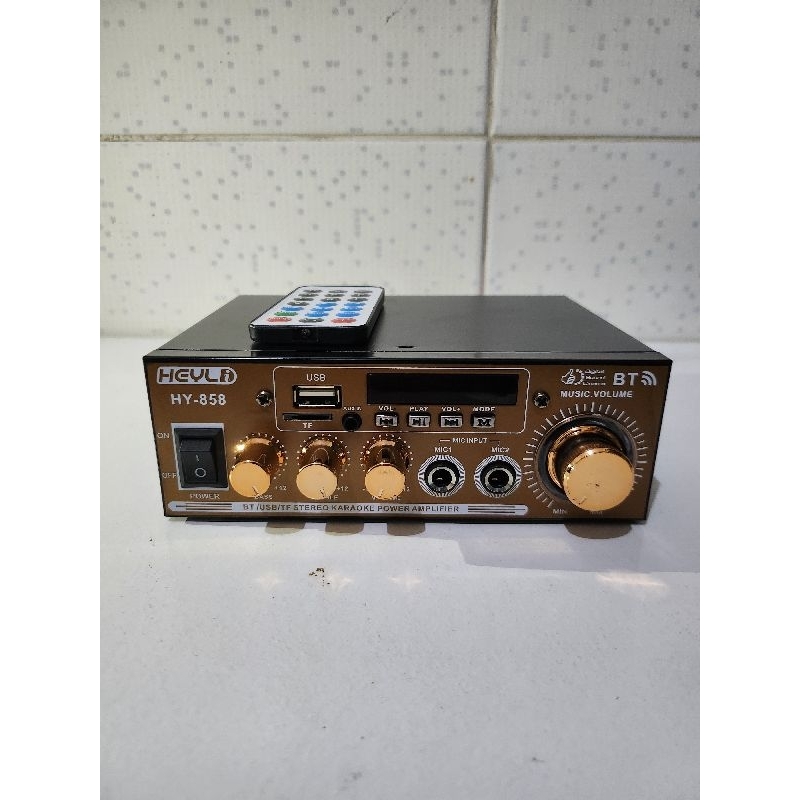 Amplificador Mixer Heyli de potência 80w + 80w = 160w 220V12V FM estéreo MP3 Card Mini USB karaoke