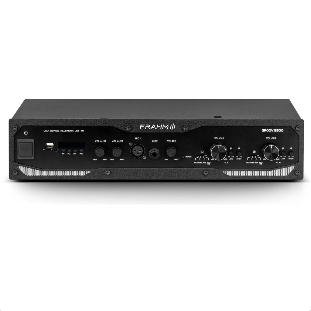 Homologação Anatel: 14273-21- 14295 Desenvolvidos com a mais alta tecnologia, os aplicadores classe D, garantem entrega de potência, baixos níveis de distorção e excelentes índices de eficiência. Com mídias e pré-amplificador embarcado, oferece praticidade e confiabilidade em instalações de médio e grande porte. Indicação de uso: Escolas, aeroportos, rodoviárias, supermercados, escritórios, lojas, hotéis, igrejas entre outros. Diferencial 1: Pré-amplificador – Conexões de mídias embarcadas no próprio case, oferece praticada para instalação, pois não necessidade e outros acessórios para reprodução de mídias como: USB, BT e FM. Diferencial 2: Conexão para microfone – Entrada para microfone XLR e P10 são elementos essências para instalação em alguns locais, sendo estas conexões já do produto. Diferencial 3: Volume inteligente- Sistema dedicado para chamadas, atenua a mídia para enfatizar a entrada microfone. Diferencial 4:. Abas para instalação em Rack – acessório que acompanha os produtos para instalação em racks padrão U19. Diferencial 5: Fonte de alimentação universal – Fonte chaveada com proteção a instabilidade da rede, mantendo a potência, mesmo com oscilações da rede elétrica, de menor tamanho e peso, “comparado com fontes convencionais” fazendo com que o equipamento fique leve. Características: - Marca: Frahm - Modelo: 32319 *Imagens Meramente Ilustrativas Especificações Técnicas: - Potência RMS : 600W (2x 300W) - Impedância: 4 Ohms - Amplificador mono : Classe D - Número de canais : 2 - Bivolt automático : 100-240V - Dimensões (AxLxP mm) : 98x435x370 - Peso : 4,9 Kg Conteúdo da Embalagem: - 1x Amplificador Profissional GR 5500 BT G5 600W RMS 4 Ohms Som Ambiente Bivolt Automático - Frahm 32319