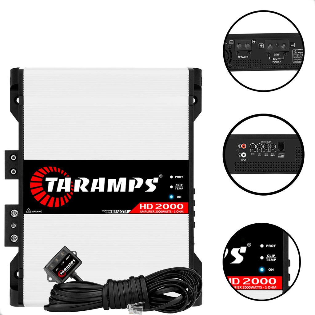 Amplificador Taramps HD 2000 1 OHM 2000 Watts RMS Classe D Som Automotivo