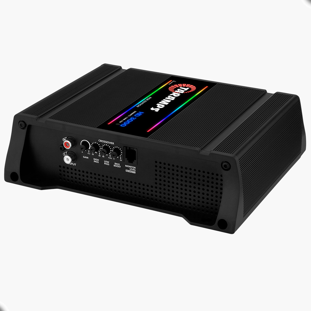 Amplificador Taramps HD 3000 RGB Edition - Preto Monocanal 1 Ohm 3000W RMS Para Som Forte Subwoofer Grave Pancadão