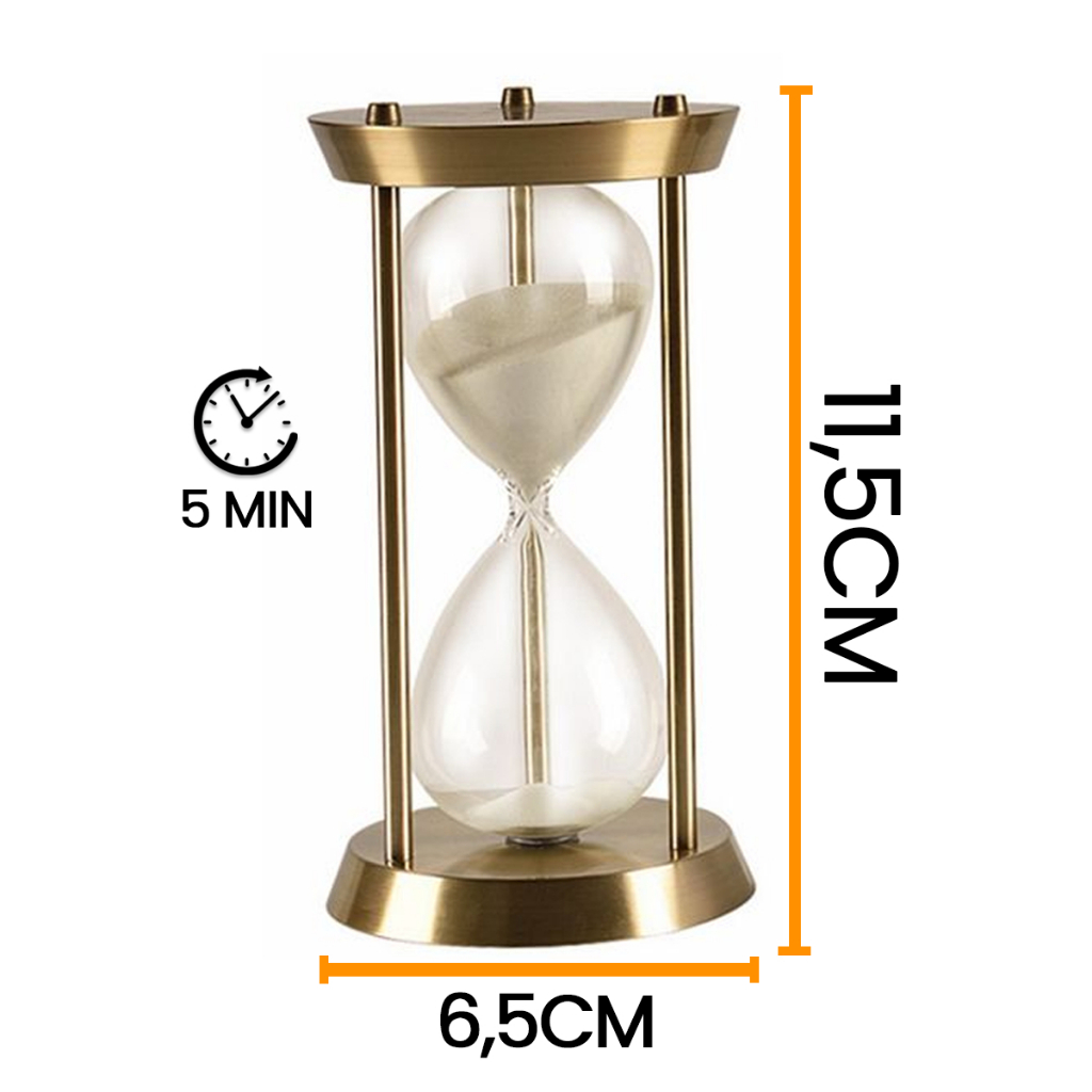 Traga o charme do clássico para a sua decoração. Diferente das ampulhetas comuns, este modelo possui uma estrutura em metal (ferro) que protege o vidro e confere um visual vintage e sofisticado. É a peça que faltava para compor sua mesa de escritório, estante de livros ou consultório. ATENÇÃO ÀS MEDIDAS: Para garantir que o produto atenda sua expectativa, verifique o tamanho antes da compra. É uma peça delicada e compacta. Altura: 11,5 cm (Aproximadamente o tamanho de uma caneta padrão). Diâmetro: 6,5 cm. CORES DA ESTRUTURA: Disponível em 2 acabamentos (Selecione na variação do anúncio): Dourado: Acabamento clássico, ideal para decorações tradicionais, vintage ou de luxo. Preto: Acabamento fosco, perfeito para ambientes modernos, estilo industrial ou minimalista. FUNCIONALIDADE E ESTILO: Além de ser um lindo objeto de decoração, ela funciona como um timer de 5 minutos, ideal para: Pausas Relaxantes: Cronometrar o tempo de descanso mental ou meditação rápida. Chás Especiais: O tempo exato para a infusão perfeita. Jogos: Usar como marcador de tempo em jogos de tabuleiro. ESPECIFICAÇÕES TÉCNICAS: Material: Vidro Borossilicato (Alta resistência) e Estrutura em Ferro/Metal. Cor da Areia: Natural/Branca (Destaca bem tanto na estrutura preta quanto na dourada). Tempo: 5 Minutos (Pode haver pequena variação). EMBALAGEM REFORÇADA: Mesmo com a proteção de metal, tratamos este item com todo cuidado. Enviamos em embalagem segura e protegida contra impactos para garantir a integridade do vidro. DICA DE PRESENTE: Um presente de extremo bom gosto para advogados, professores, escritores ou qualquer pessoa que aprecie decorações com personalidade.