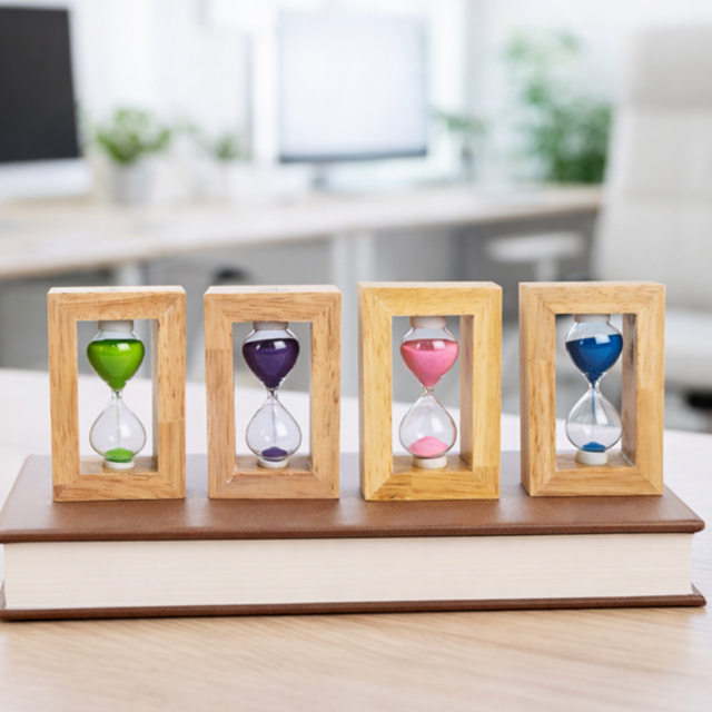 Ampulheta Decorativa Quadrada Madeira Vidro Relógio de Areia 3/5/10 Min Decoração Escritório e Sala