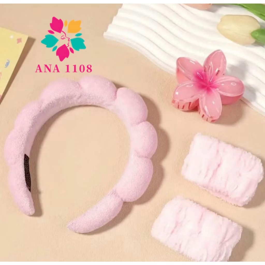 ANA 1108 Acessórios de Skincare Spa Feminino-(1 conjunto contém 4) Presilha de Flor Tiara Nuvem Faixa de Pulso
