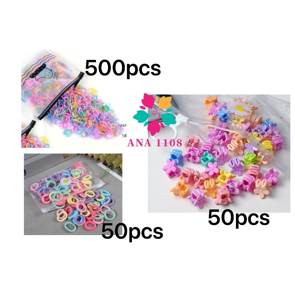 ANA1108 Kit 500 Elastico de cabelo+50 peças Mini Rabicó Xuxinha+50 unidades Mini presilha de cabelo infantil Com Bolsa
