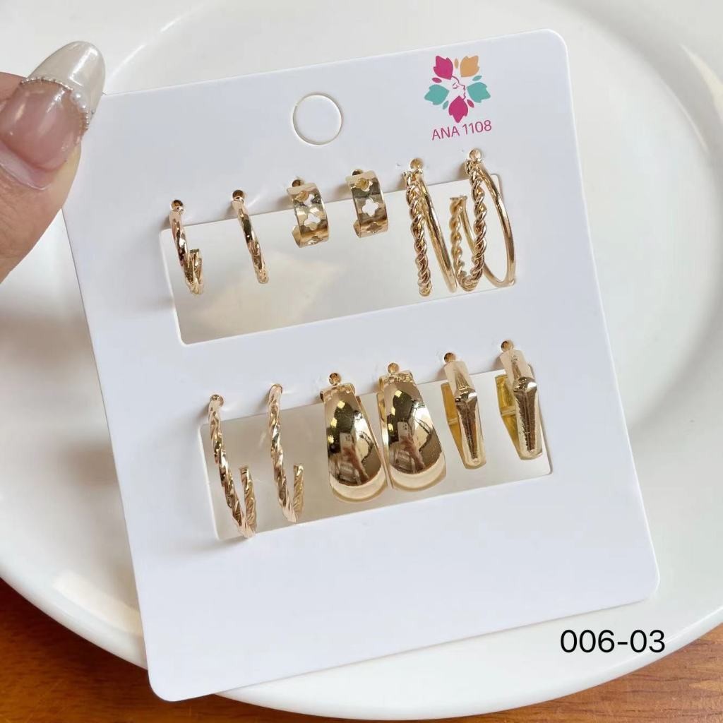 ANA1108 KIT 6 Pares de Minis Argolas Brincos Prata/Dourado-223A