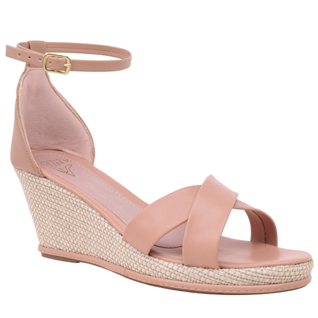 Anabela Sandália Feminina Salto Tecido Juta Modelo com Fecho em Fivela Moda Modare