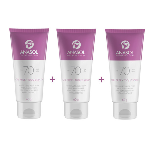 Anasol Kit 3 Protetores Solar Facial FPS 70 Oil Free 60g