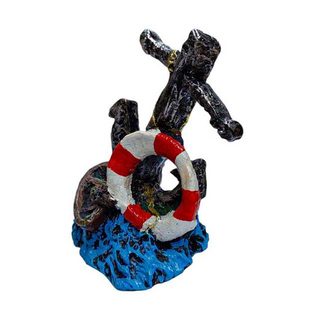 Ancora Boia com Barco Enfeite Aquário Resina
